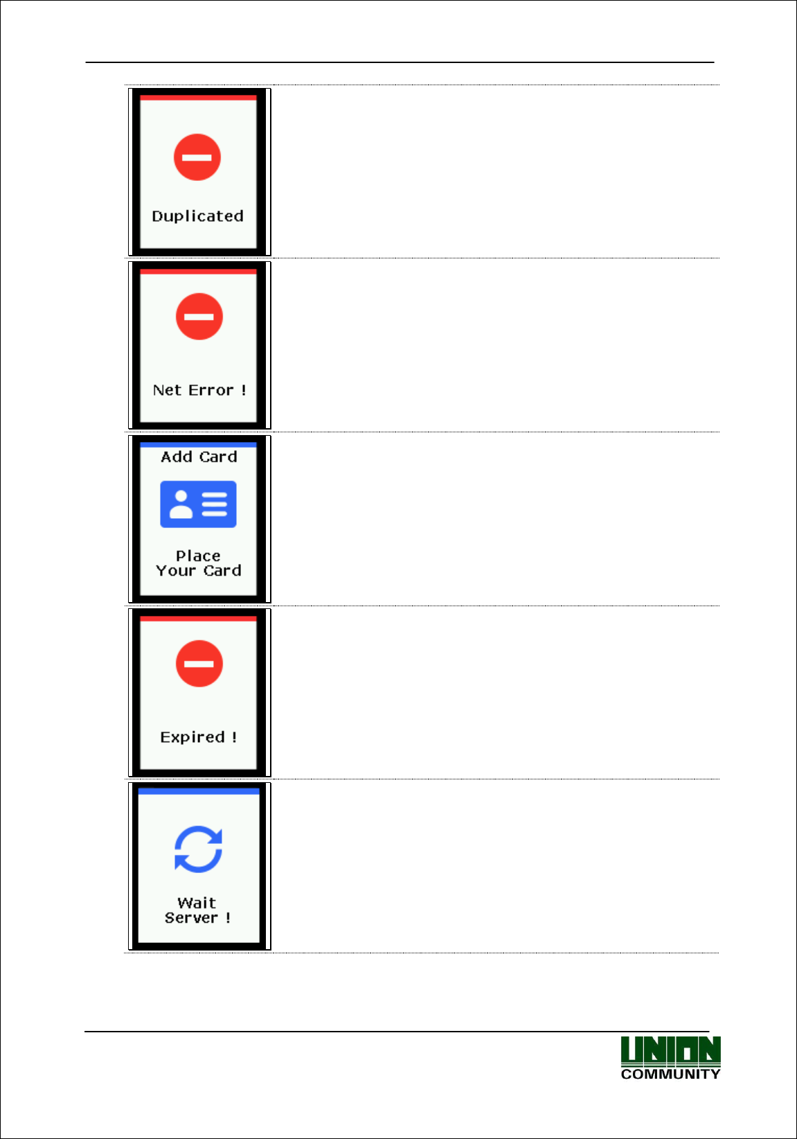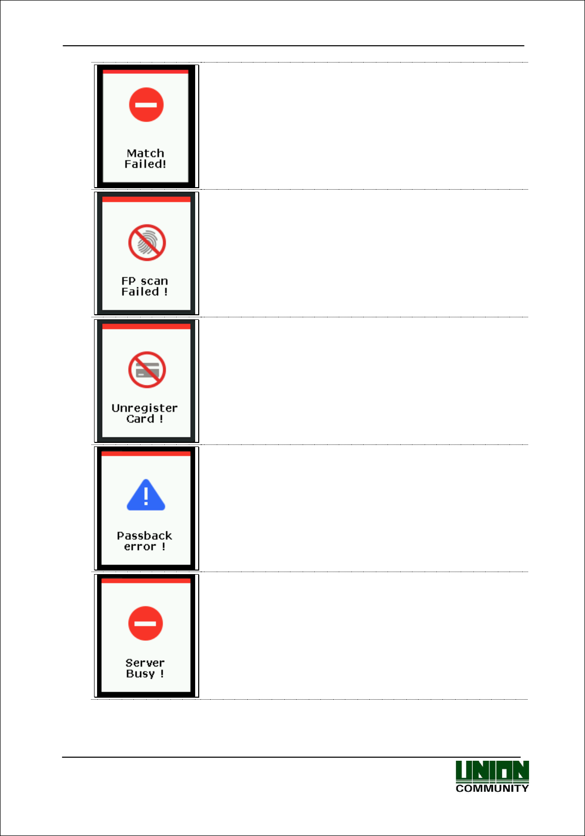 Error Message: The following messages will appear with the voice message of “Please try again”.