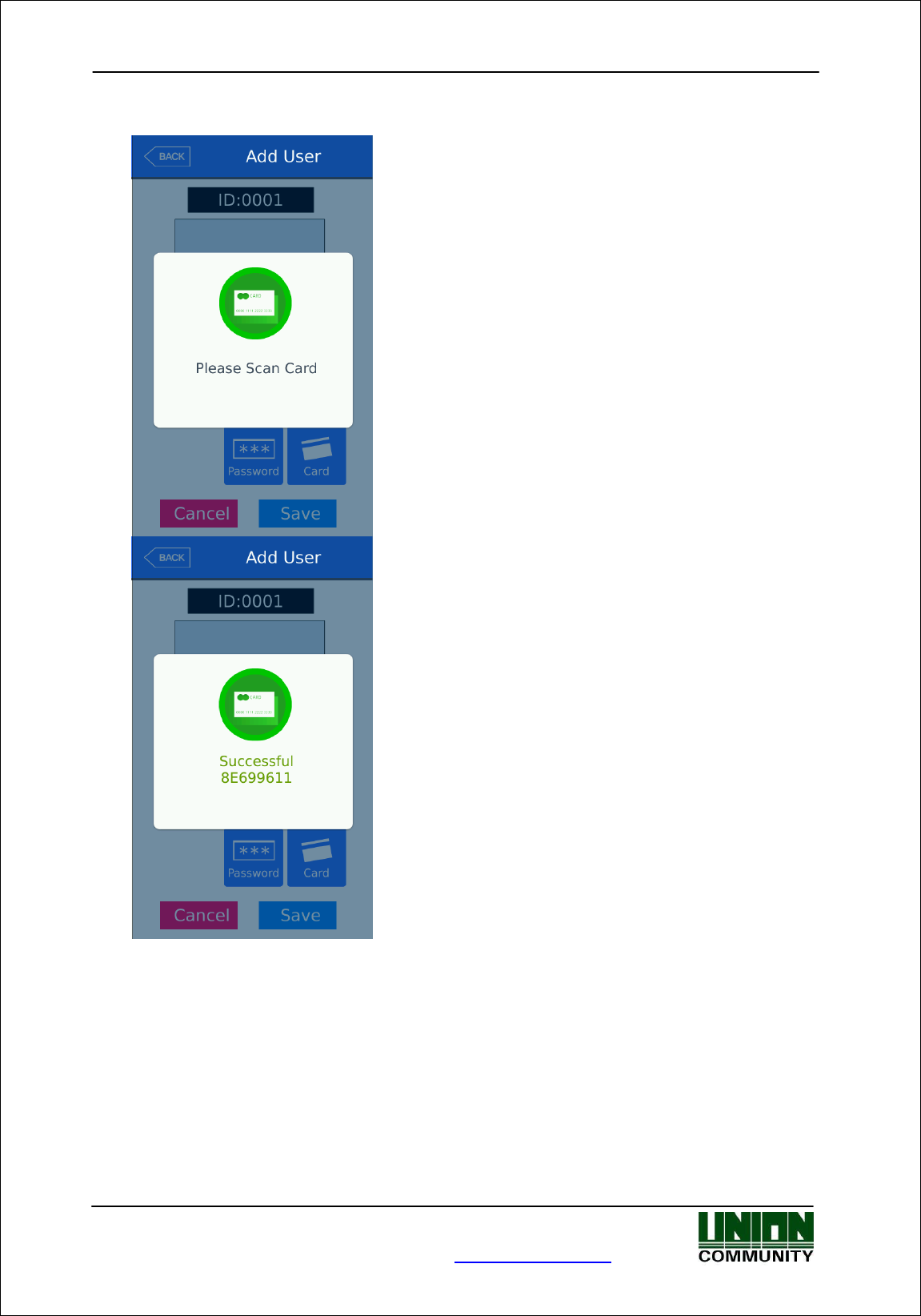 Touch/Scan the card on the area of the card reader as shown in <Fig. 4-1>
