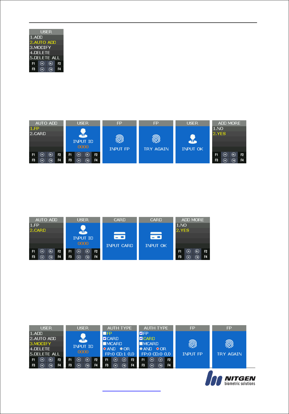 - Only User ID or the user fingerprint registered to the card is compared. This is called