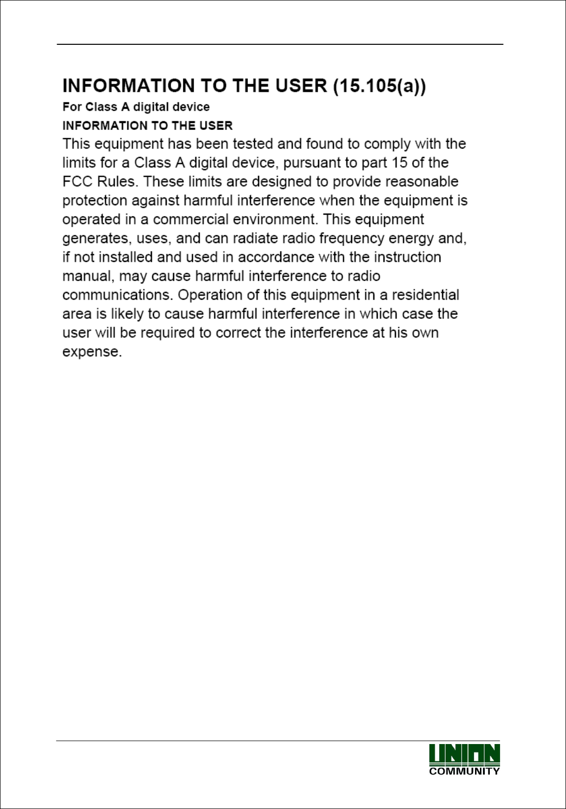 ※ Under no circumstances will Union Community be responsible for accidents or damages caused by