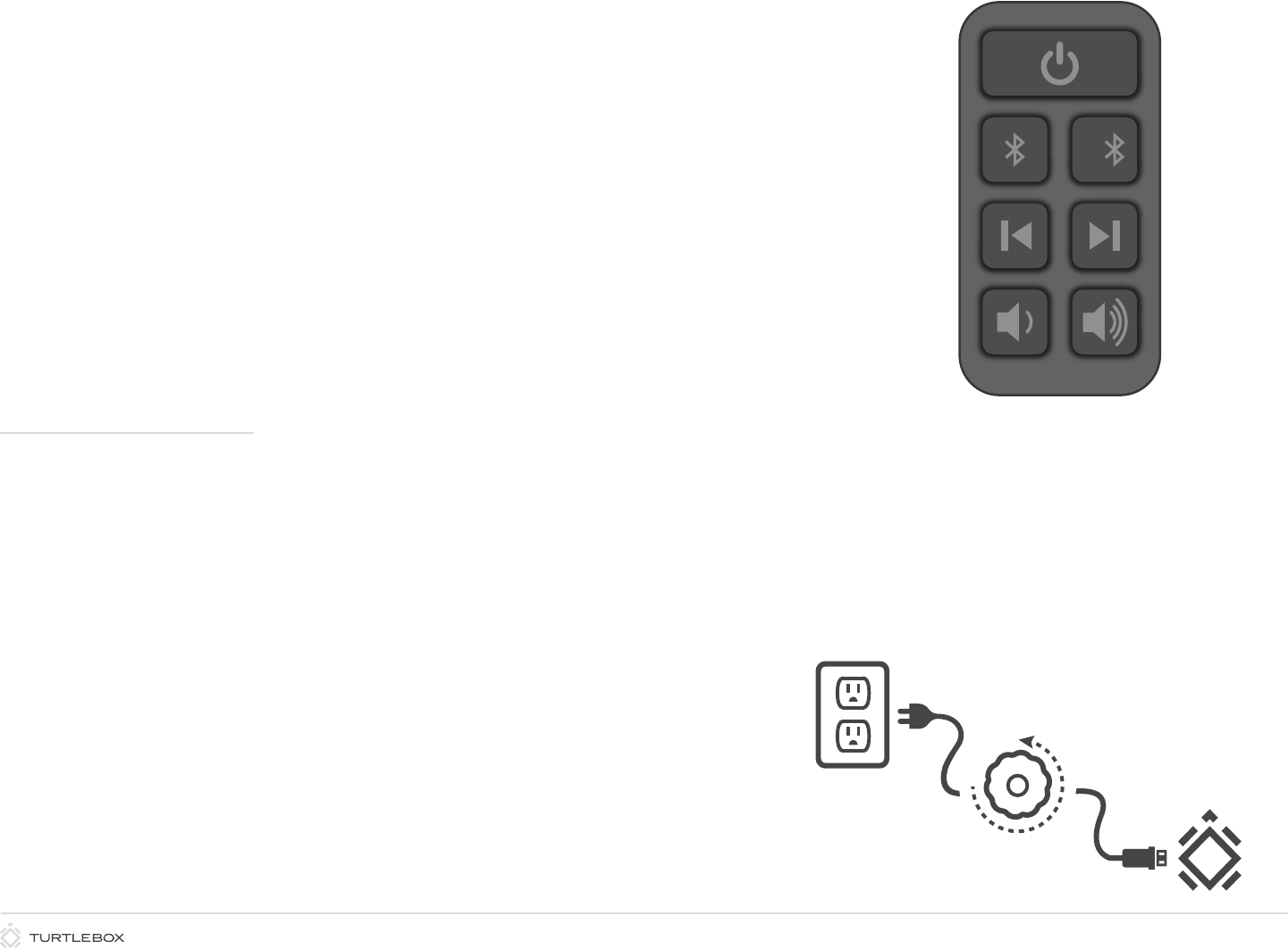 To reduce the risk of re or electric shock, do not expose the TURTLEBOX to water or