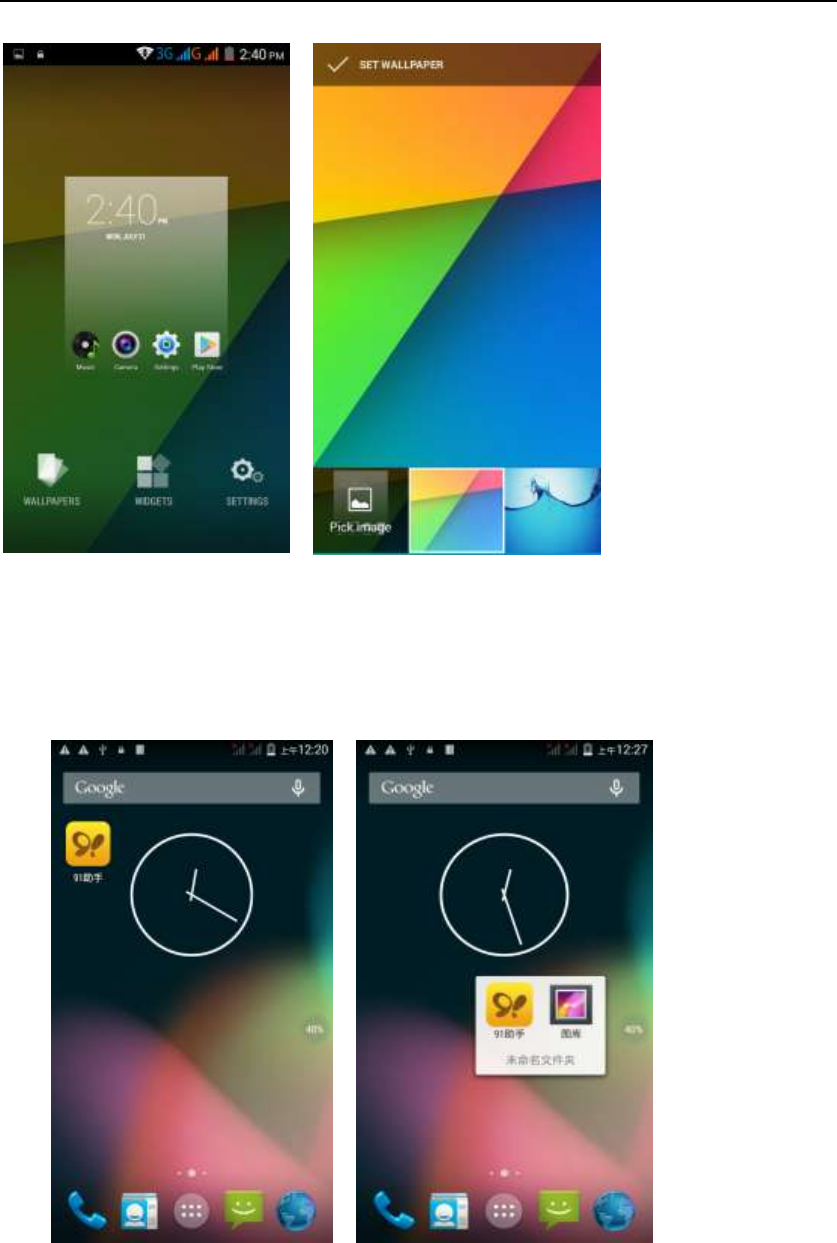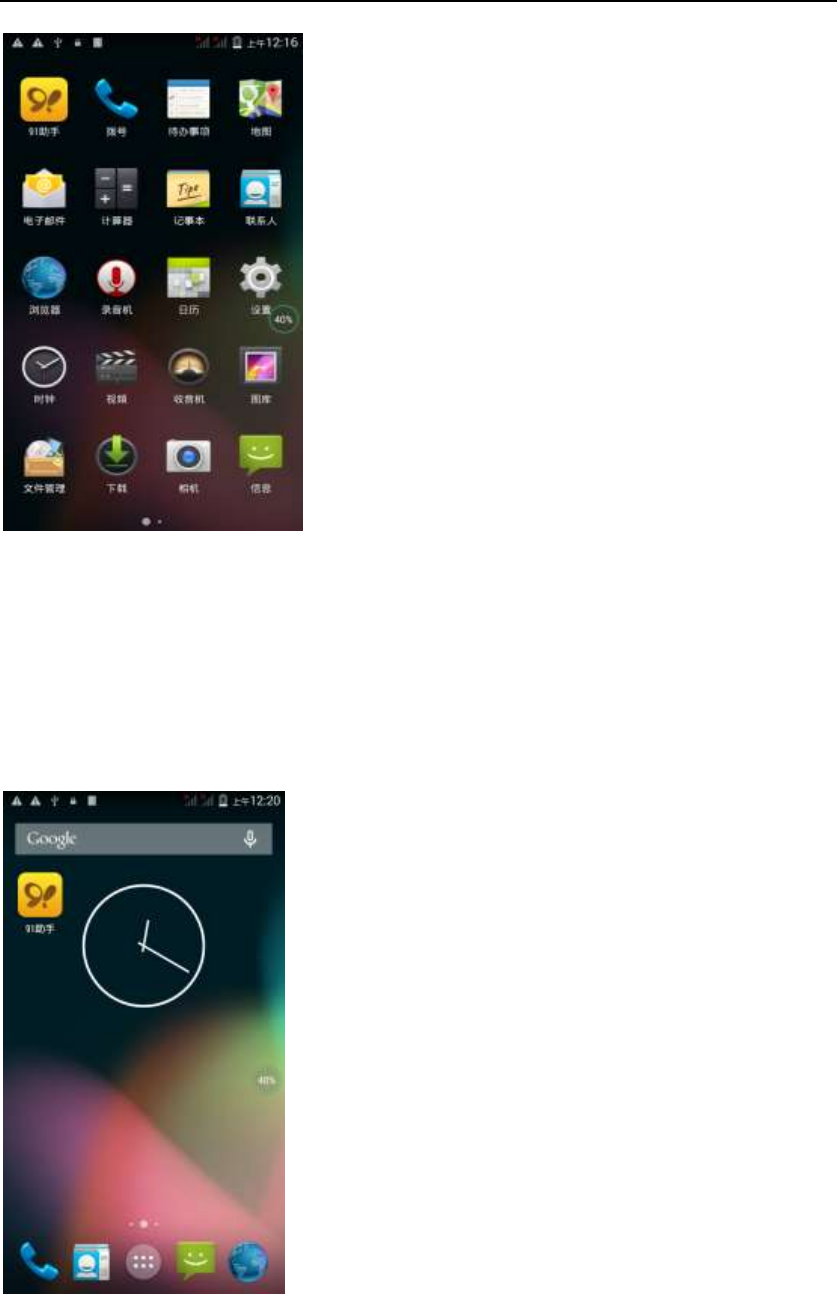 1, long press the space of the idle -choose widgets ,add widgets to the main