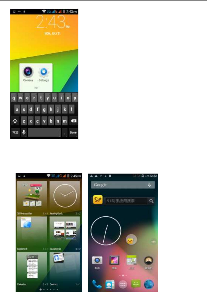 screen: in the widgets interface - > Long press a widget can add to the main
