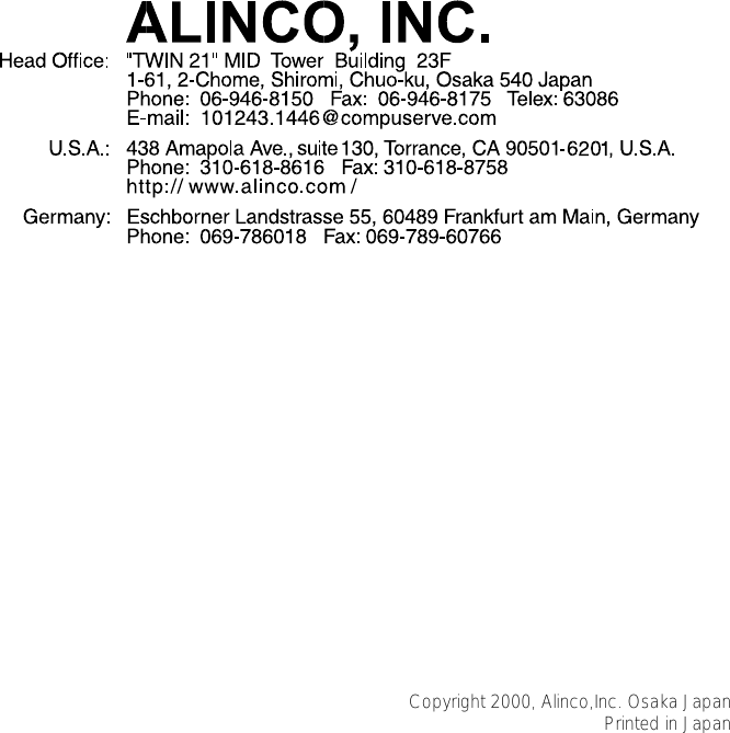 USA Alinco Branch Wide Range Scanning Receiver 2000448 FCC