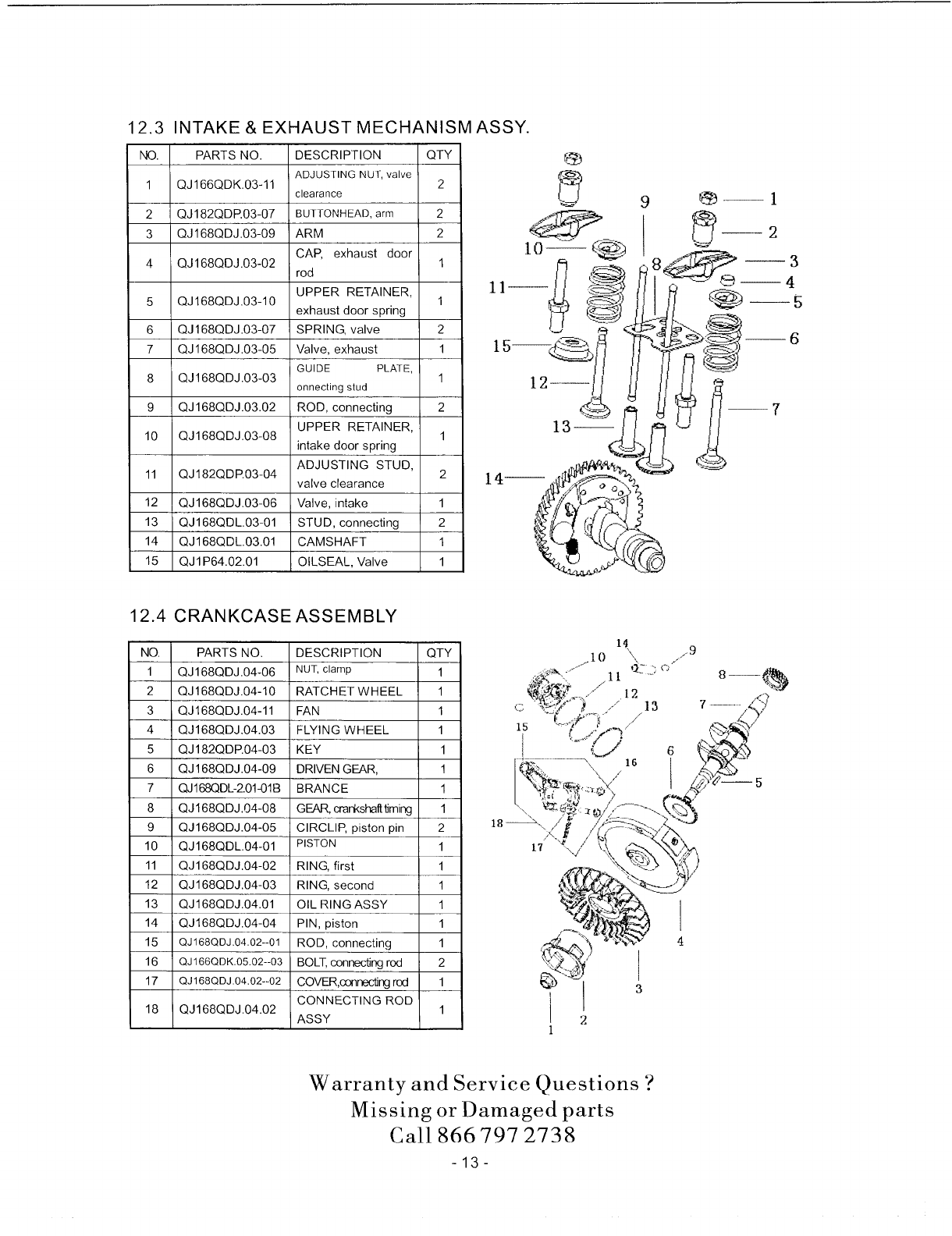 12.3 INTAKE & EXHAUST MECHANISM ASSY.- .......................... 13