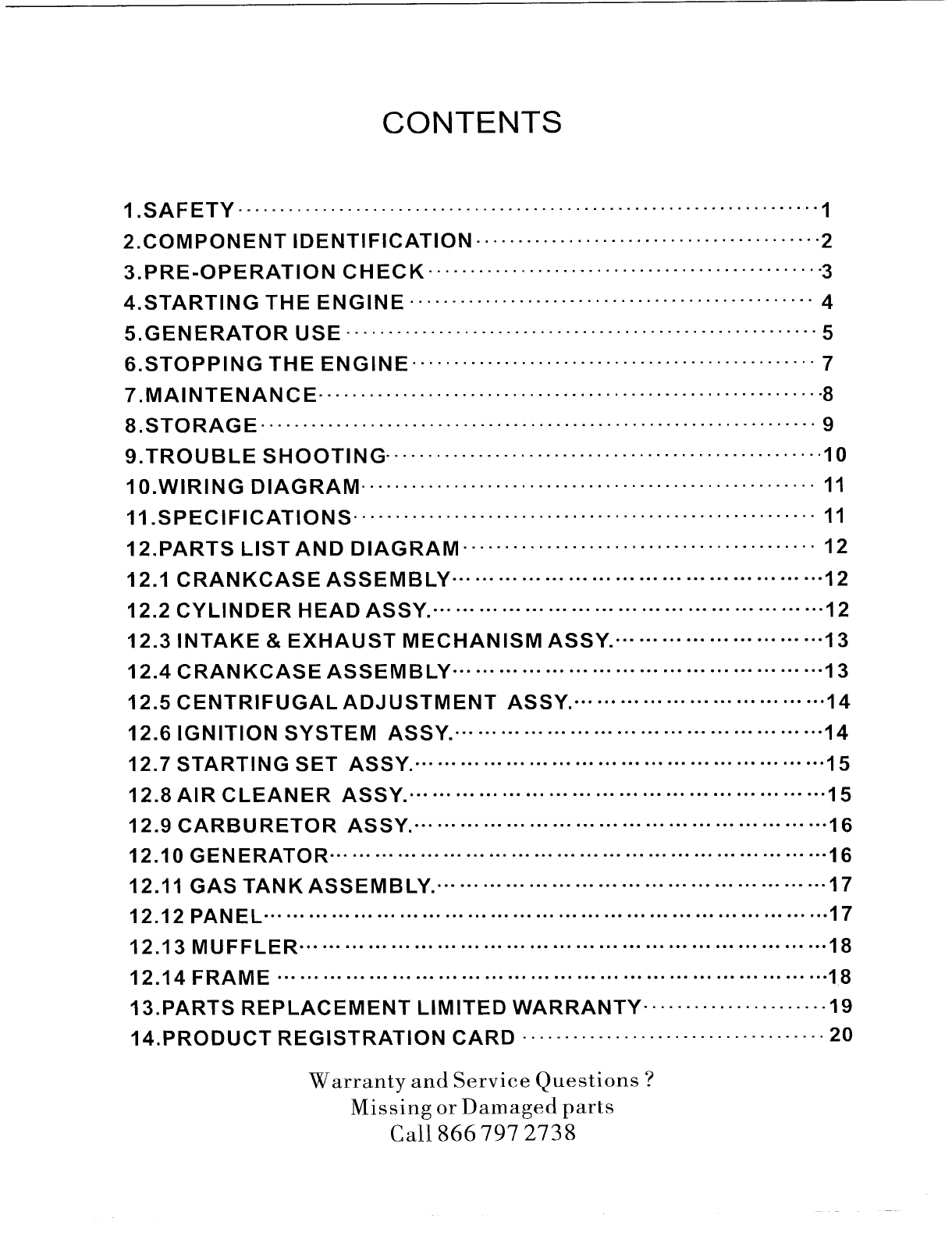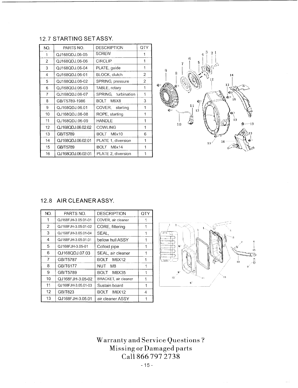 12.7 STARTING SET ASSY.- ..................................................... 15