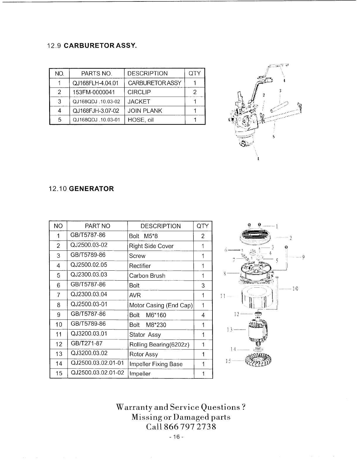 12.9 CARBURETOR ASSY.- ..................................................... 16