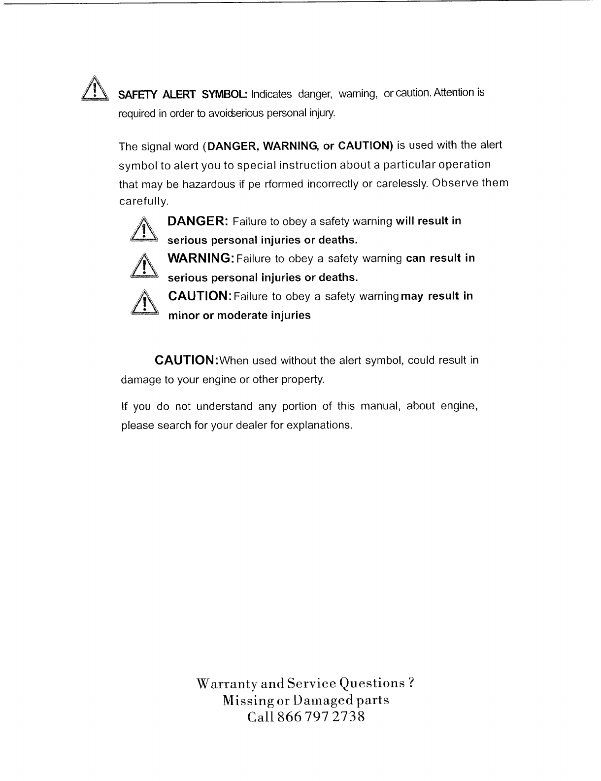 If you do not understand any portion of this manual, about engine,