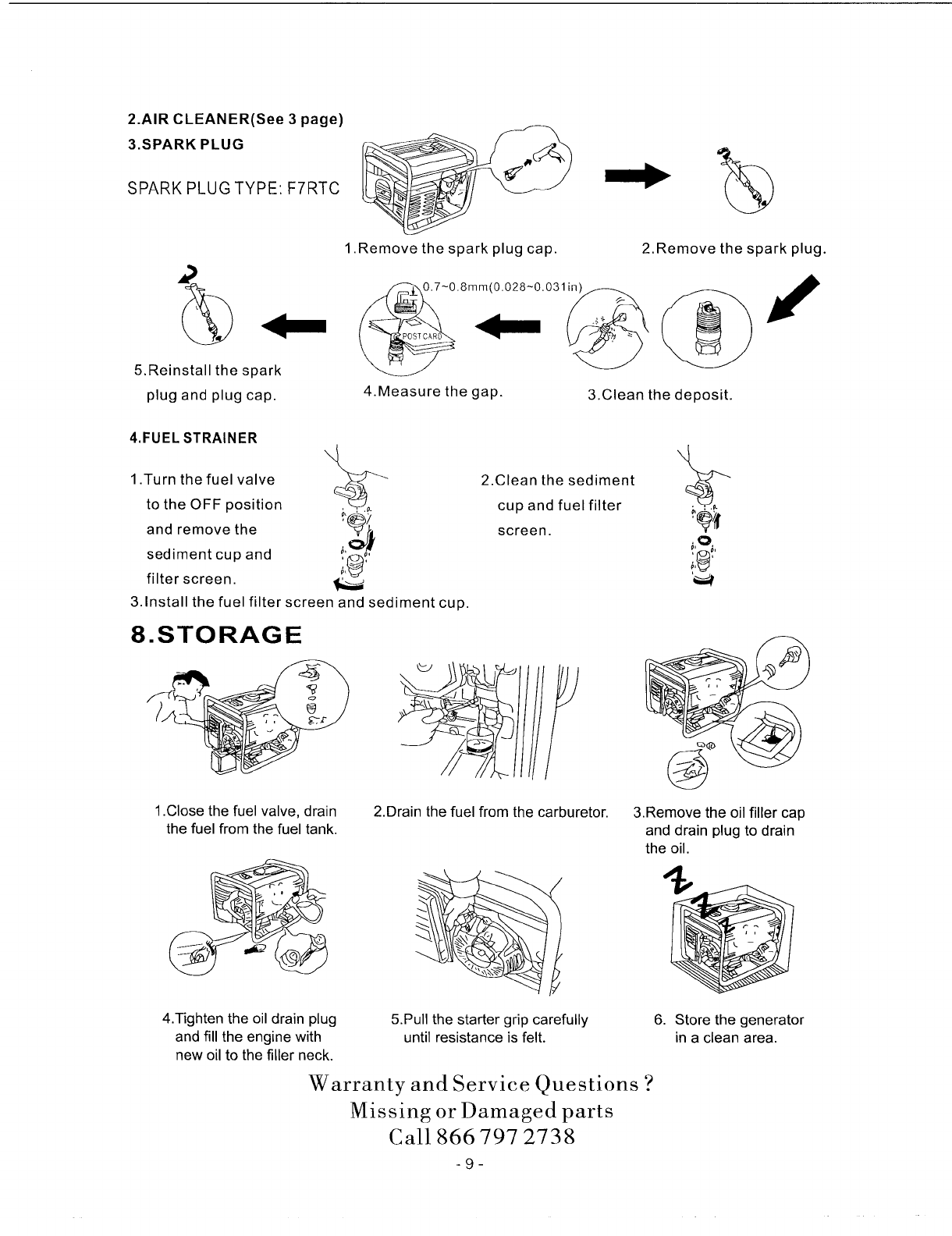 adjustments, fuel system cleaning, spark plugs and obstruction due to contaminant buildup are not covered by this warranty.