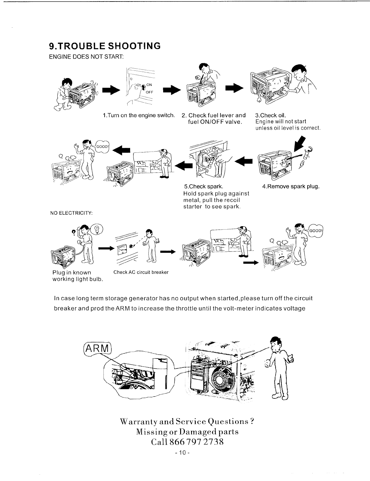• Generators need periodic parts and service to perform well. This warranty does not cover repair when normal use has exhausted the life of a part or