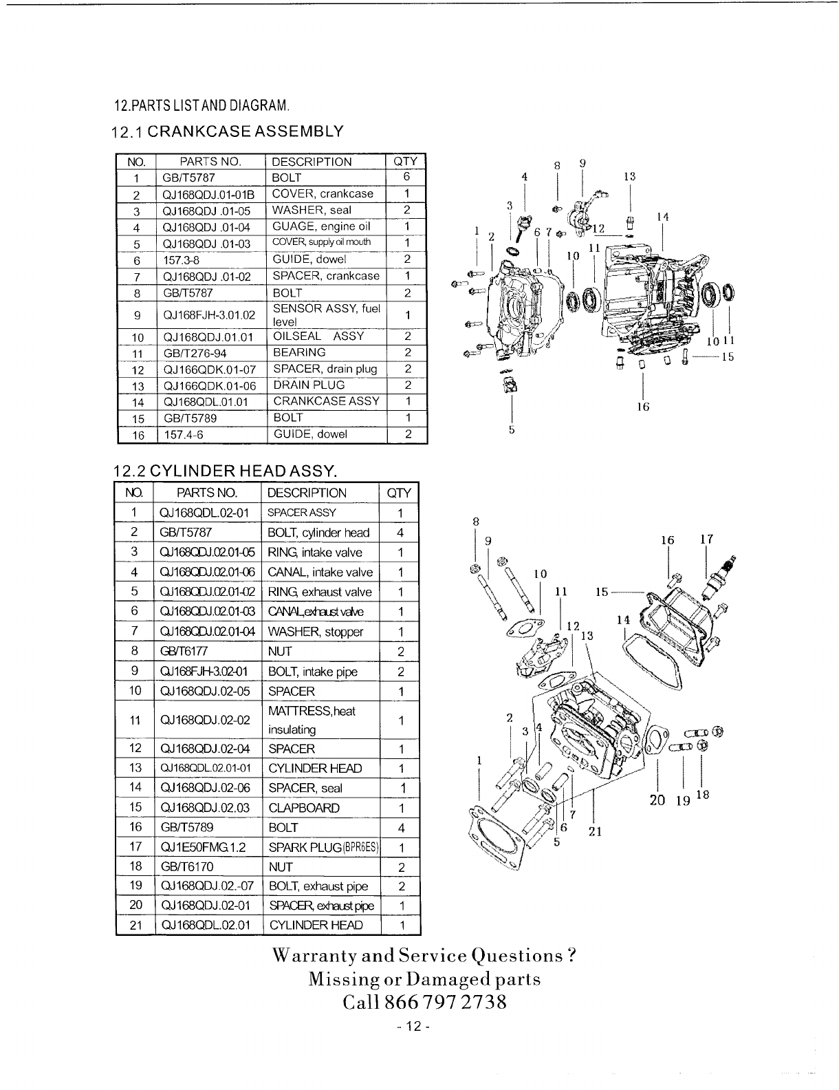 12.2 CYLINDER HEAD ASSY.. .................................................. 12