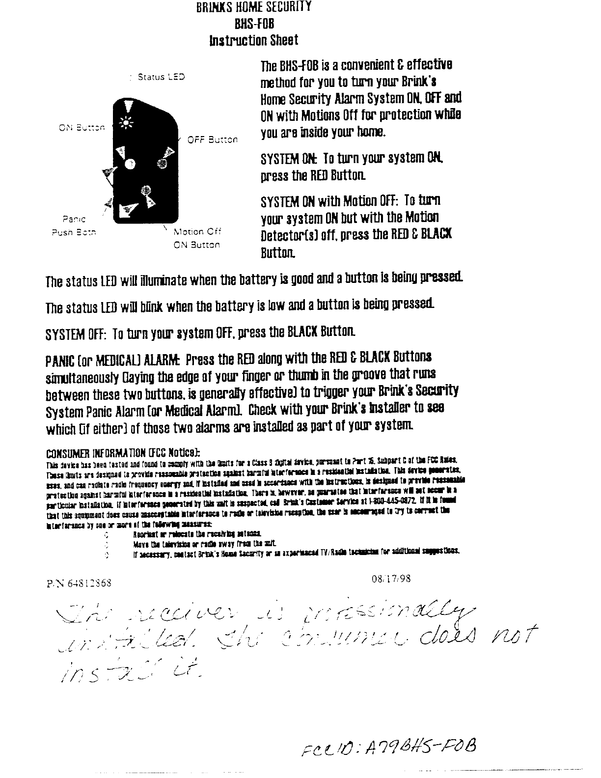 UTC Fire and Security BHS-FOB-RCVR User Manual 48346