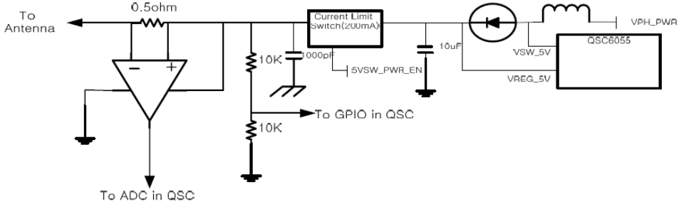 voltage to QSC. QSC reads analog voltage by its ADC and monitors the antenna status.
