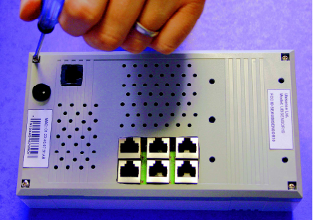 remove the rear of the device by undoing the four retaining screws (as shown in the photograph