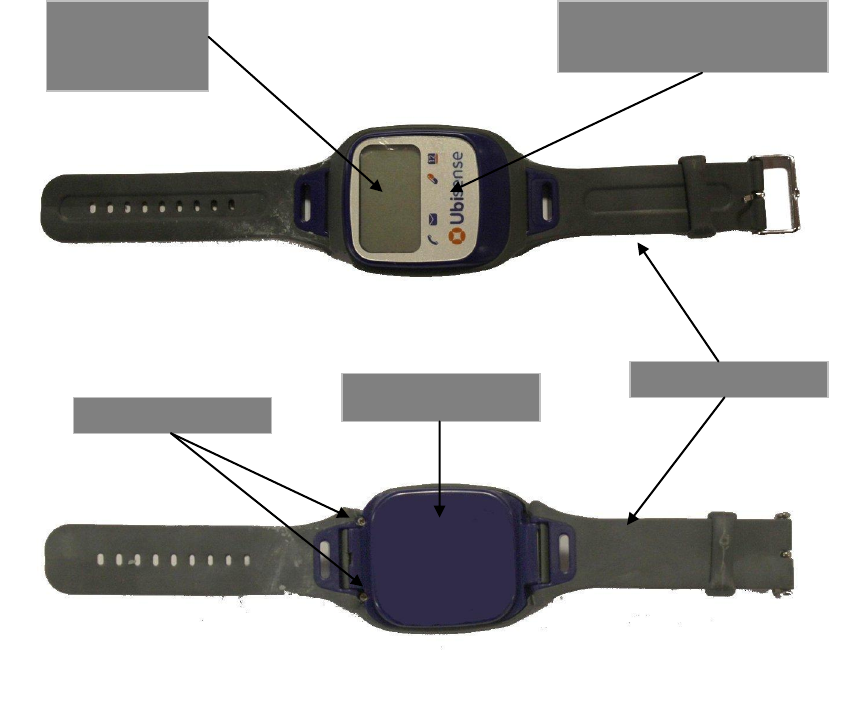 The diagram below shows several important features of the UBIWATCH21 device:
