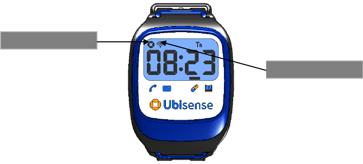 Illumination of the “Ubisense” icon indicates that the tag is searching for signals from the