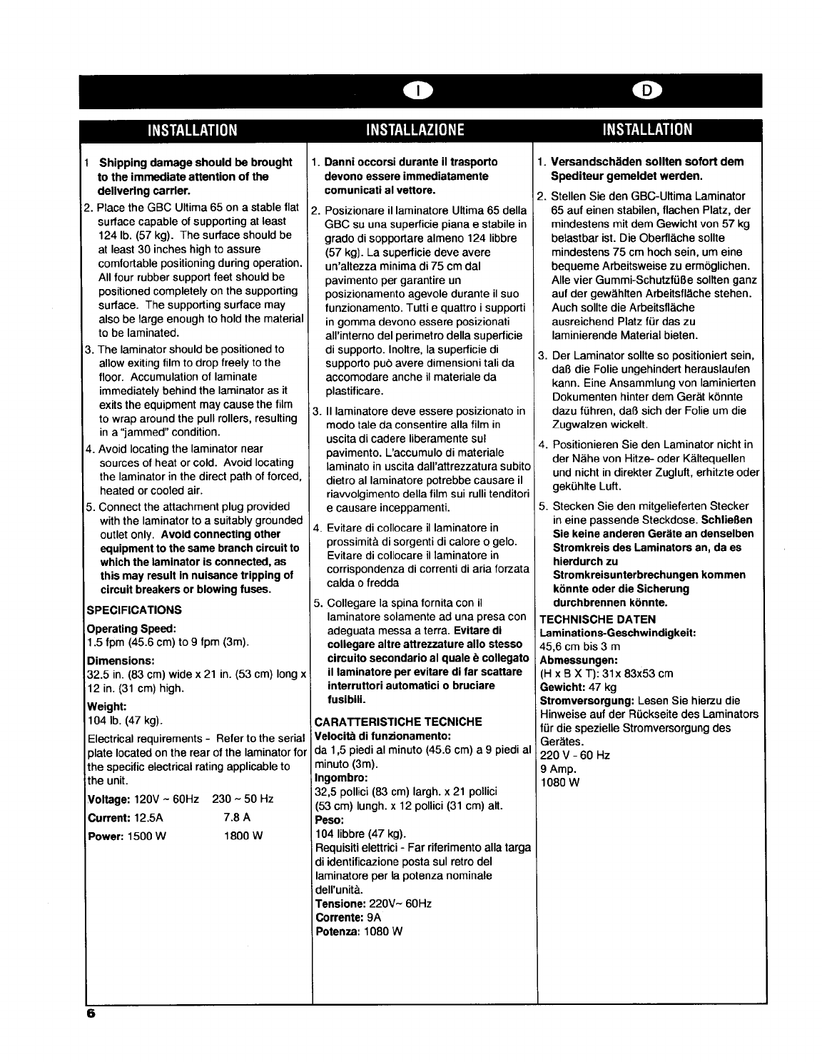 Ultima Electronic 65 Users Manual