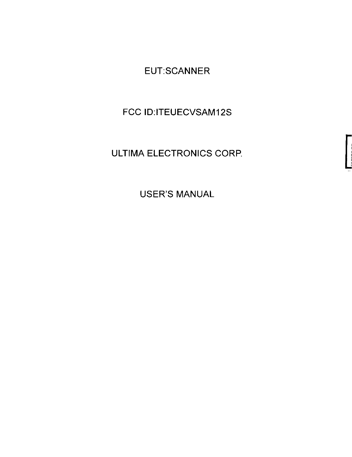 Ultima Electronics UECVSAM12S User Manual 82708