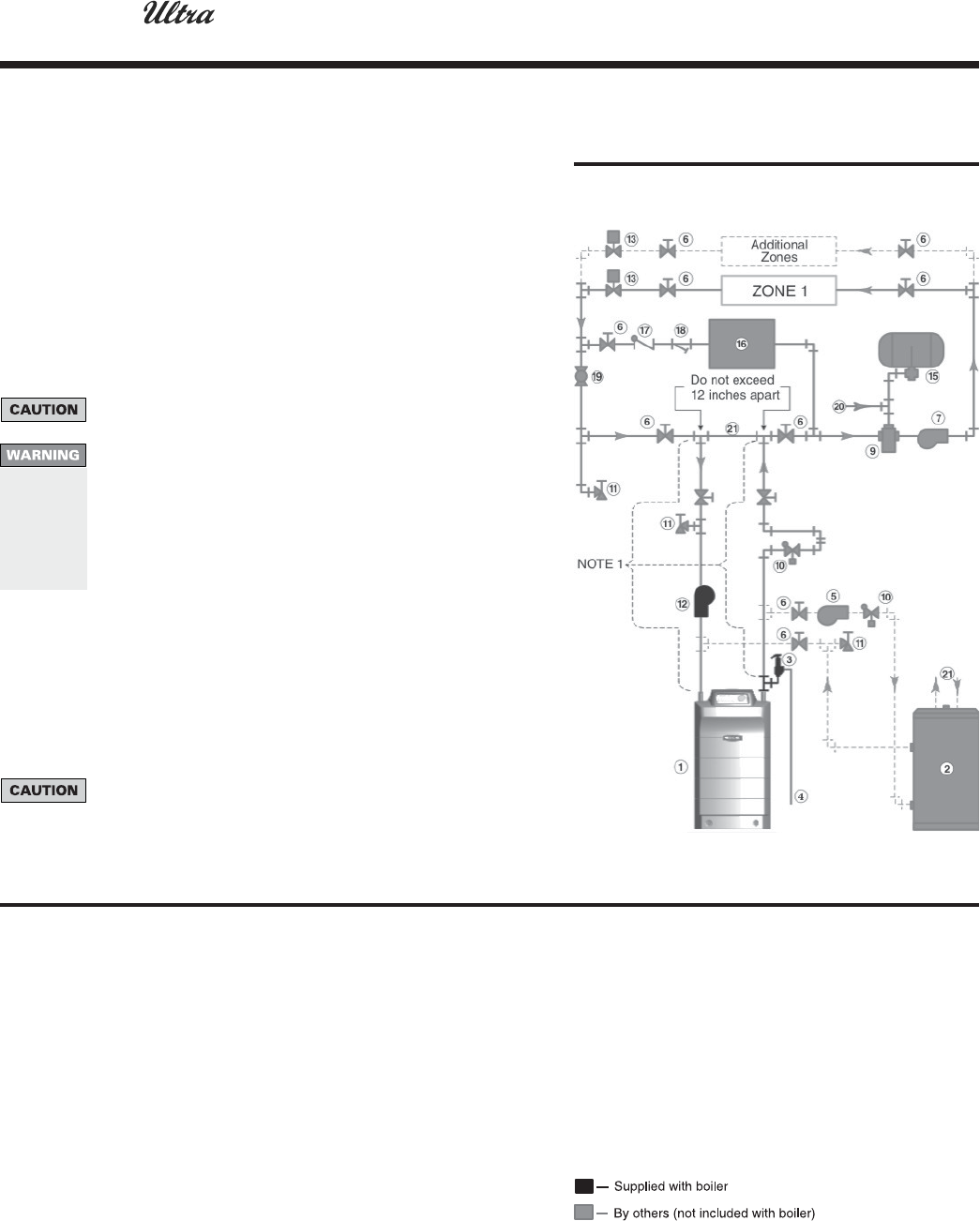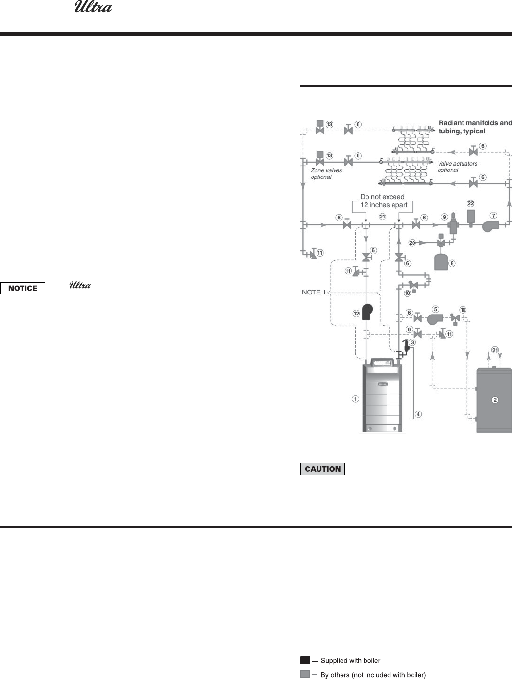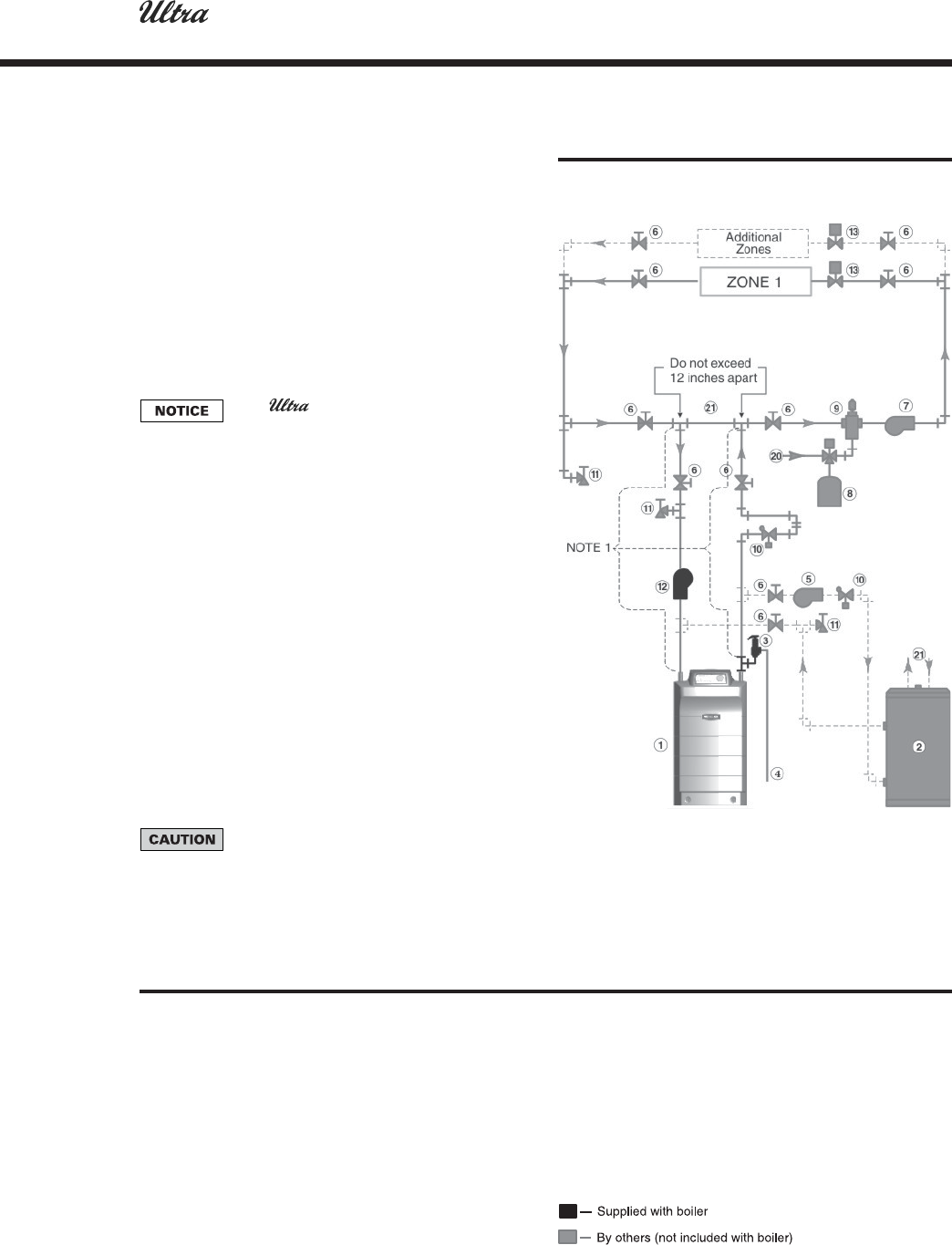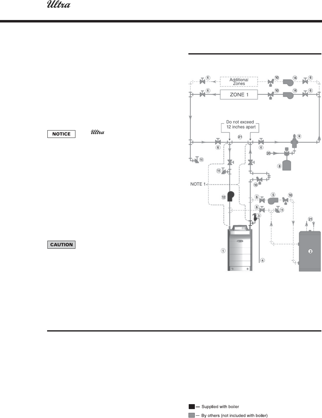 Notes and 1¼" circulator flanges are shipped with boiler on Ultra-