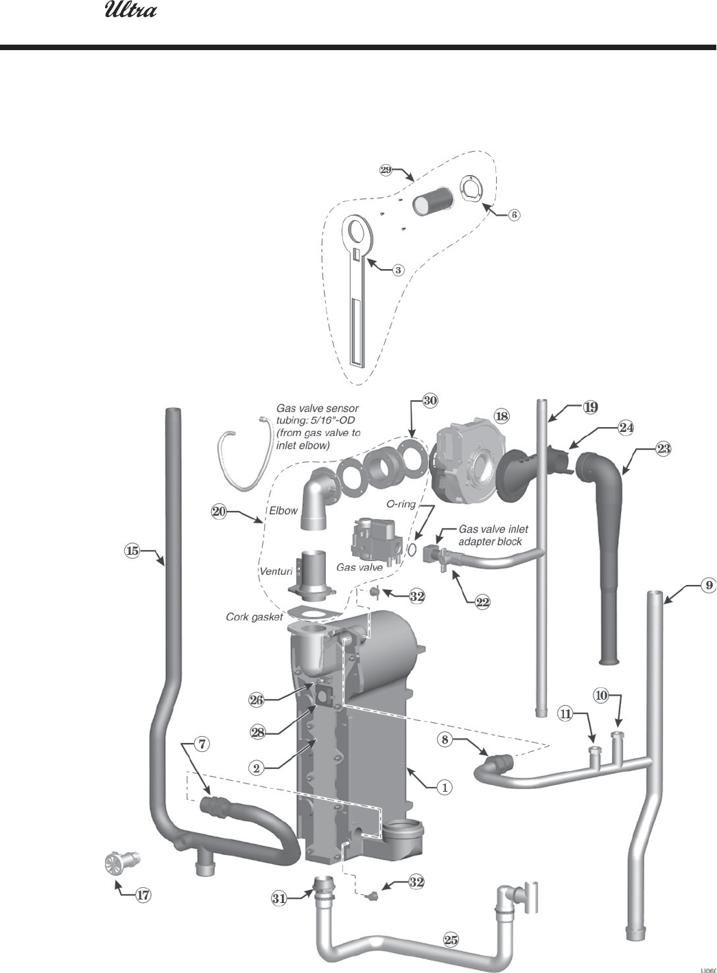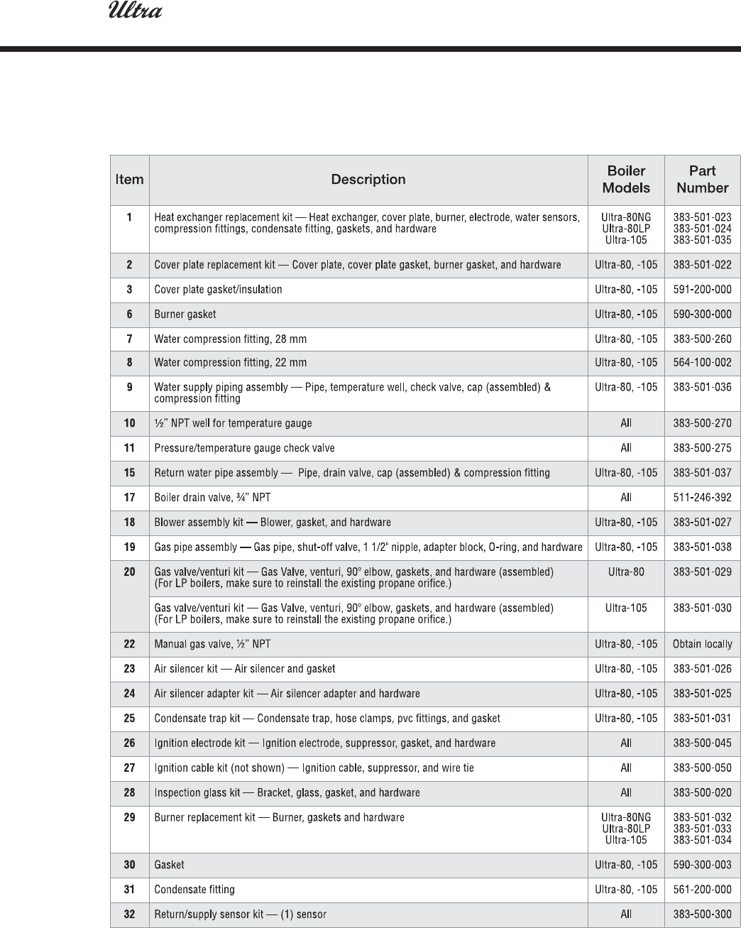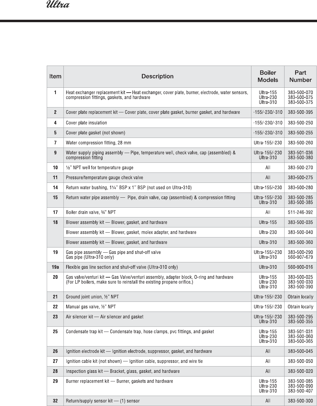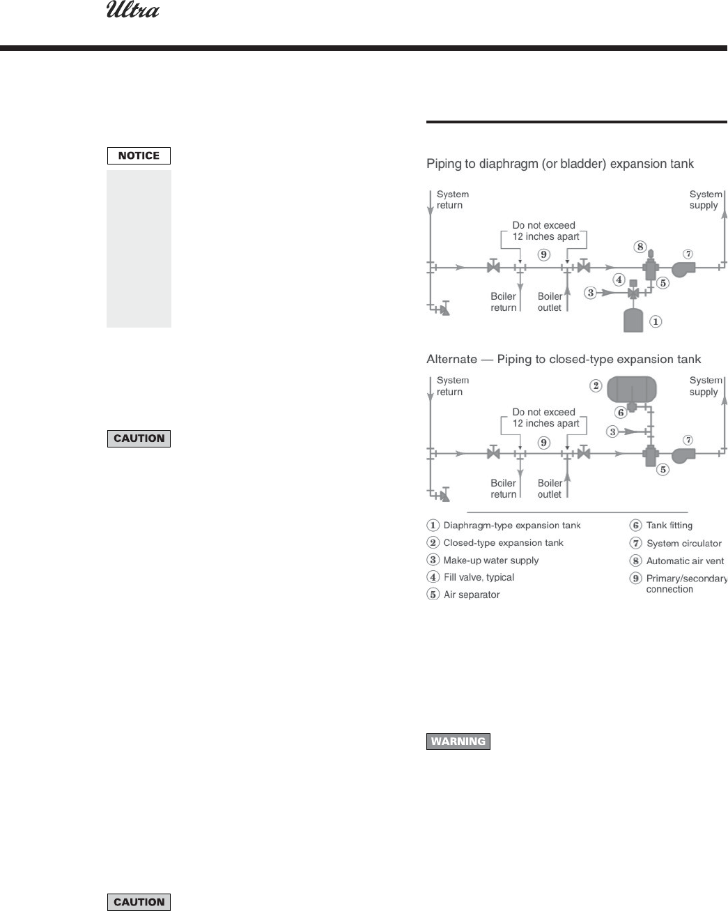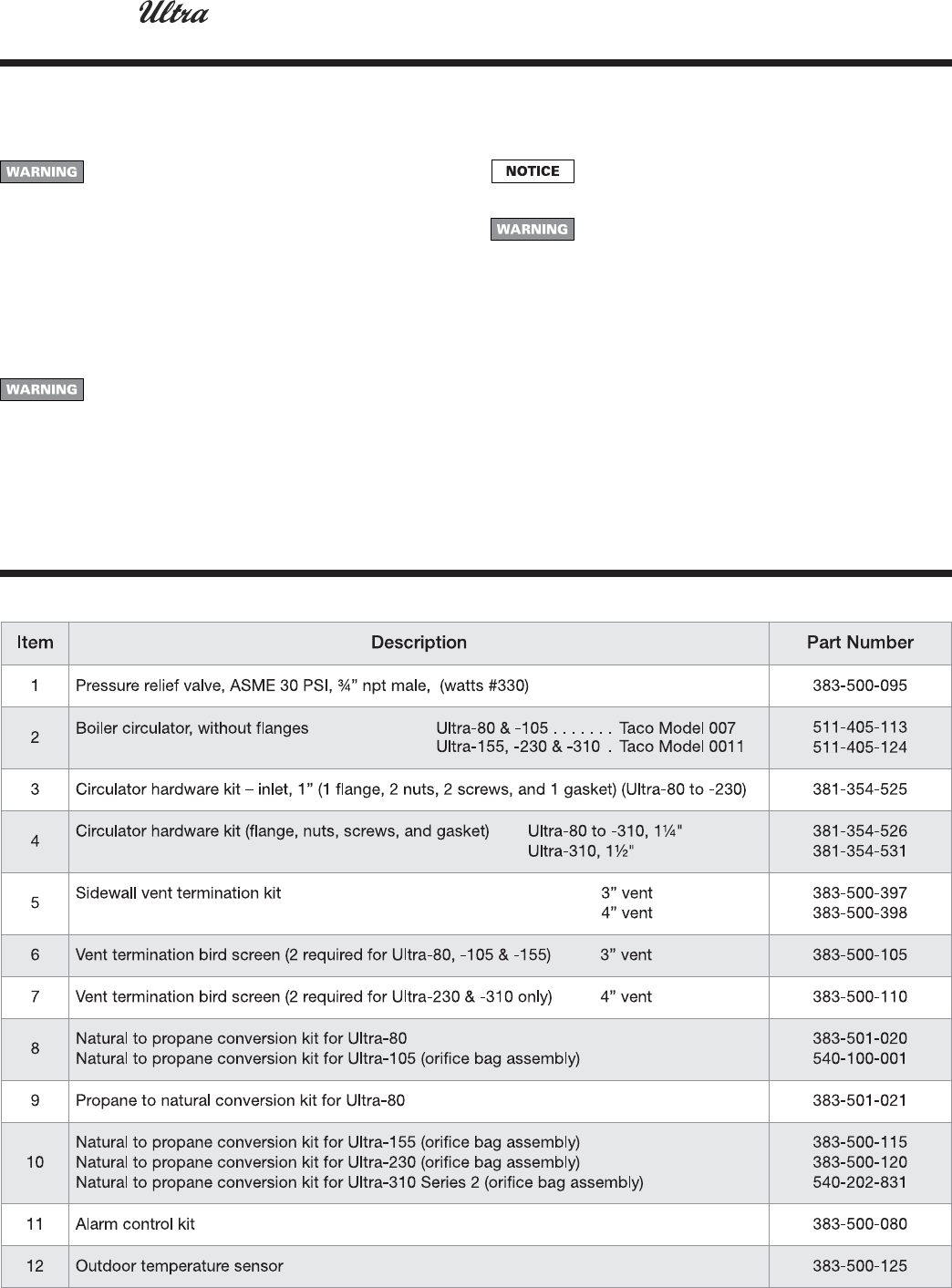 Notes and 1¼" circulator flanges are shipped with boiler on Ultra-