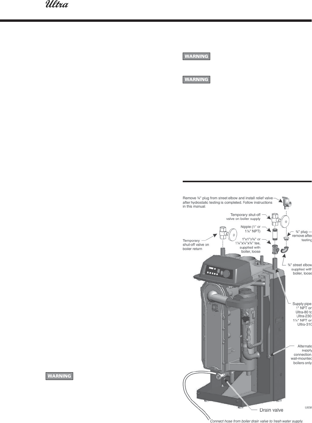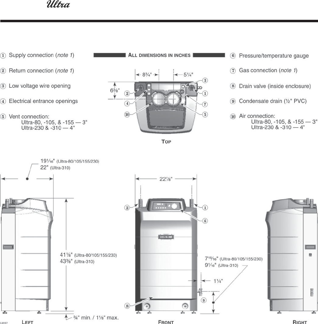 1. Boiler supply and return tappings are both 1" NPT (Ultra-