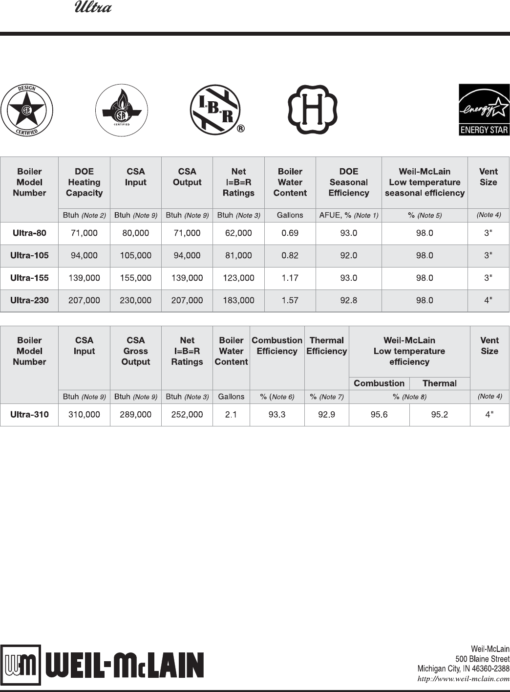 Notes 5. Weil-McLain Low temperature seasonal efficiency is based