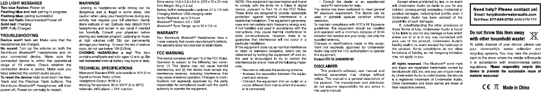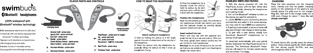 Underwater Audio SB100 Swimbuds Bluetooth headphones User Manual