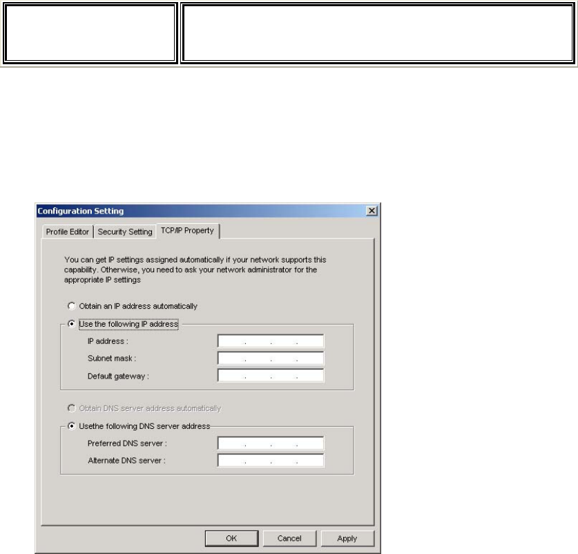 7. Select “TCP/IP Property” tab. Enter the settings and click “OK” to save the