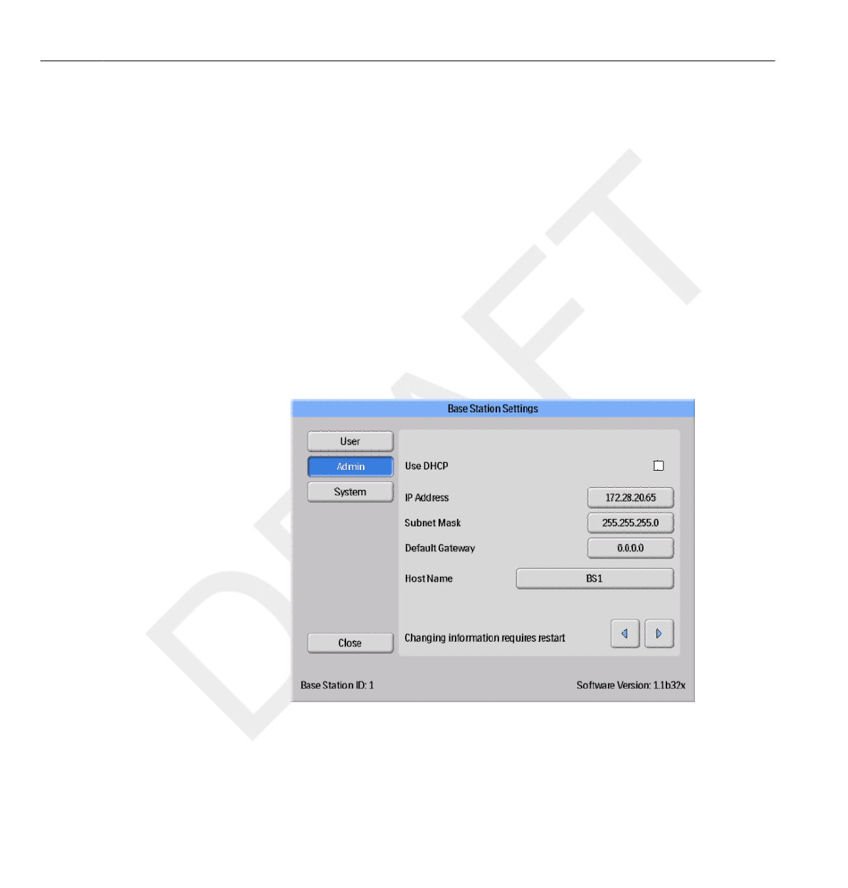 Table 10.2 Base Station technical specifications