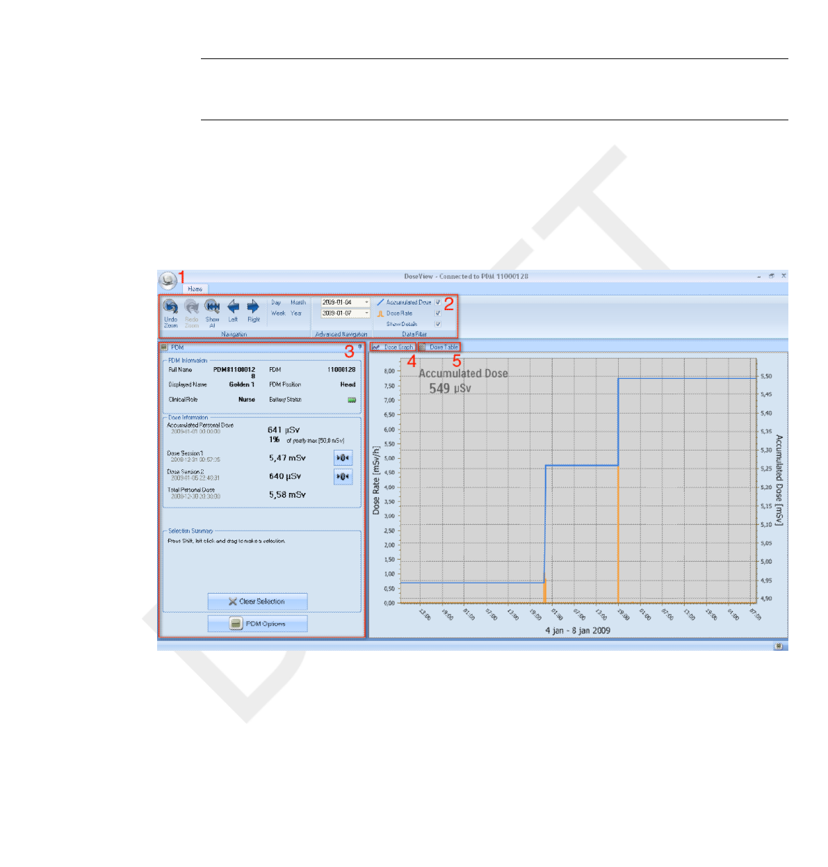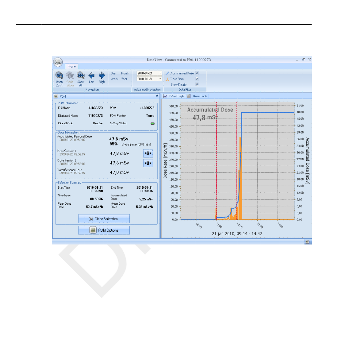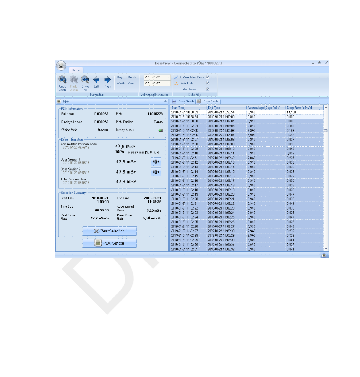 DoseView or Dose Manager when the dose history is presented.