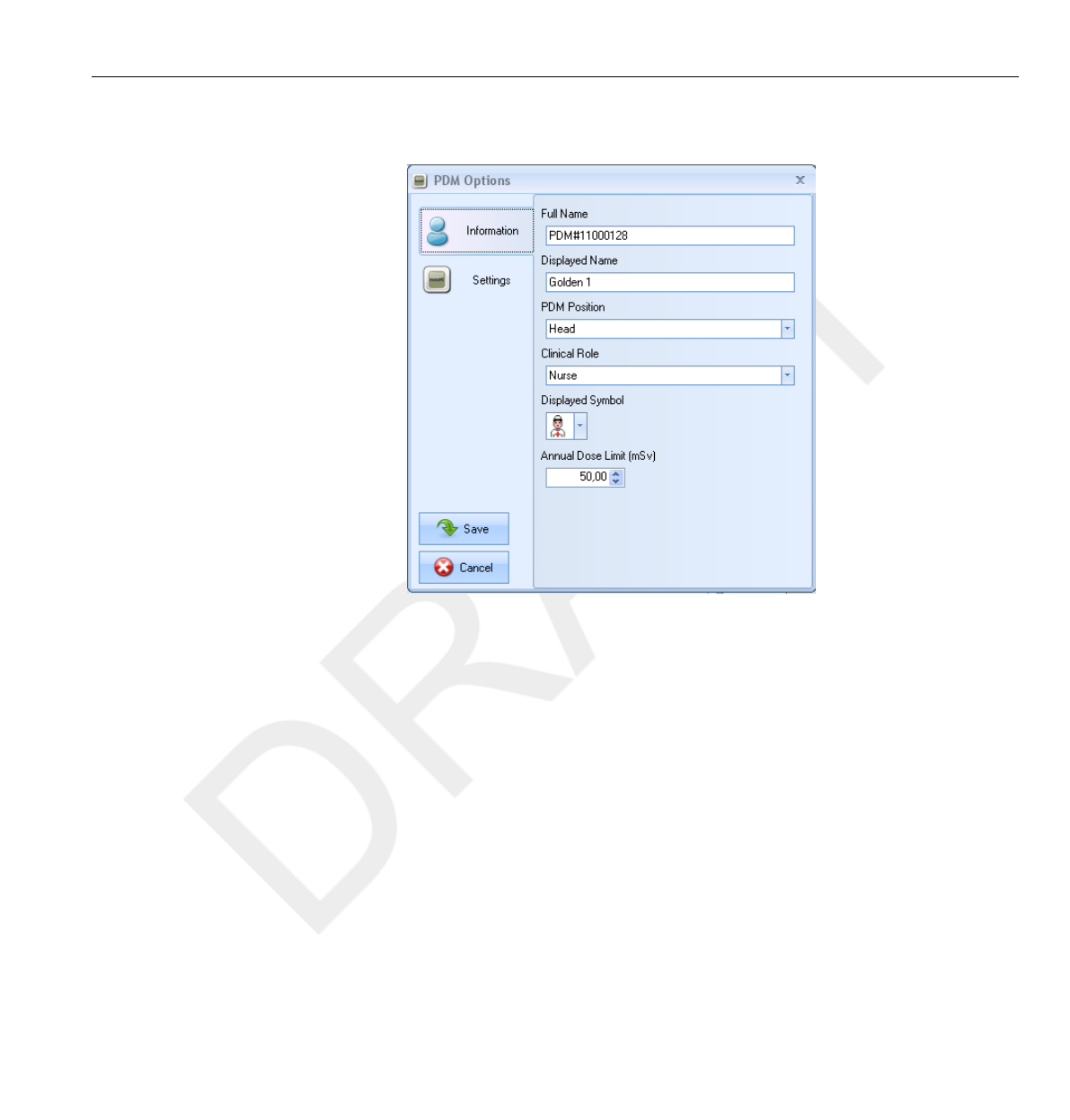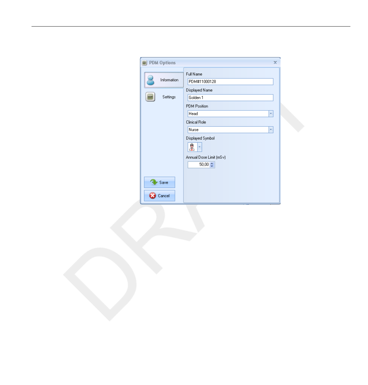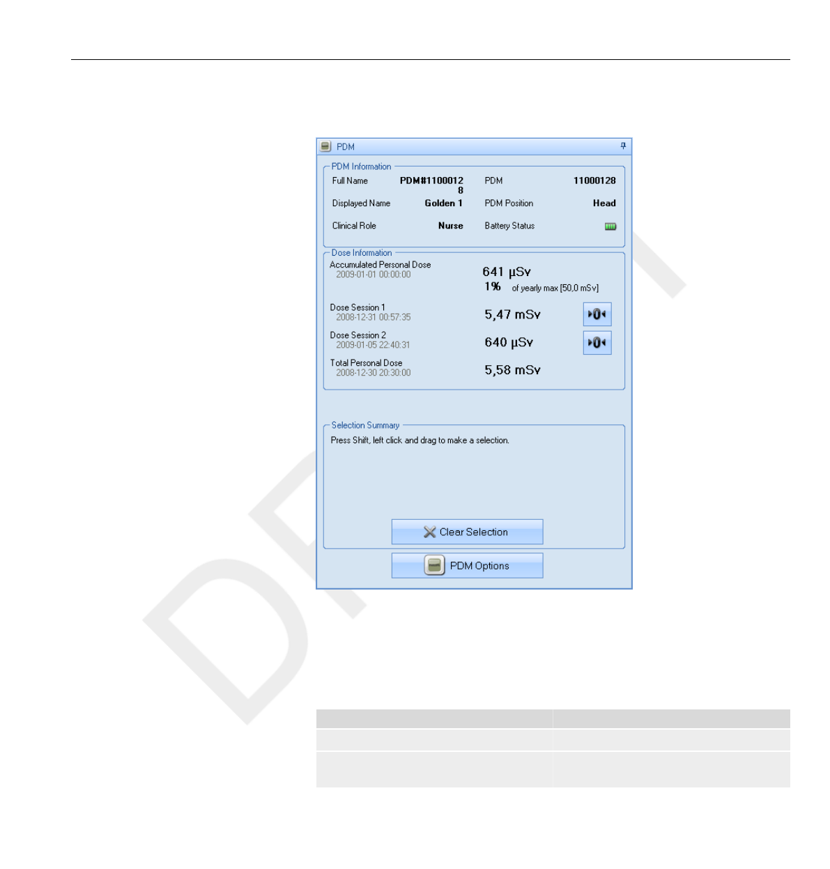 DoseView or Dose Manager when the dose history is presented.