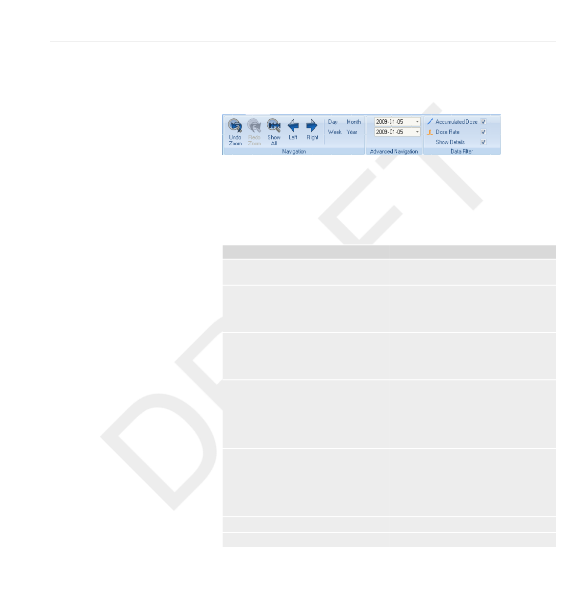 Show details check box in the Data filter panel (see section “View dose graph” on