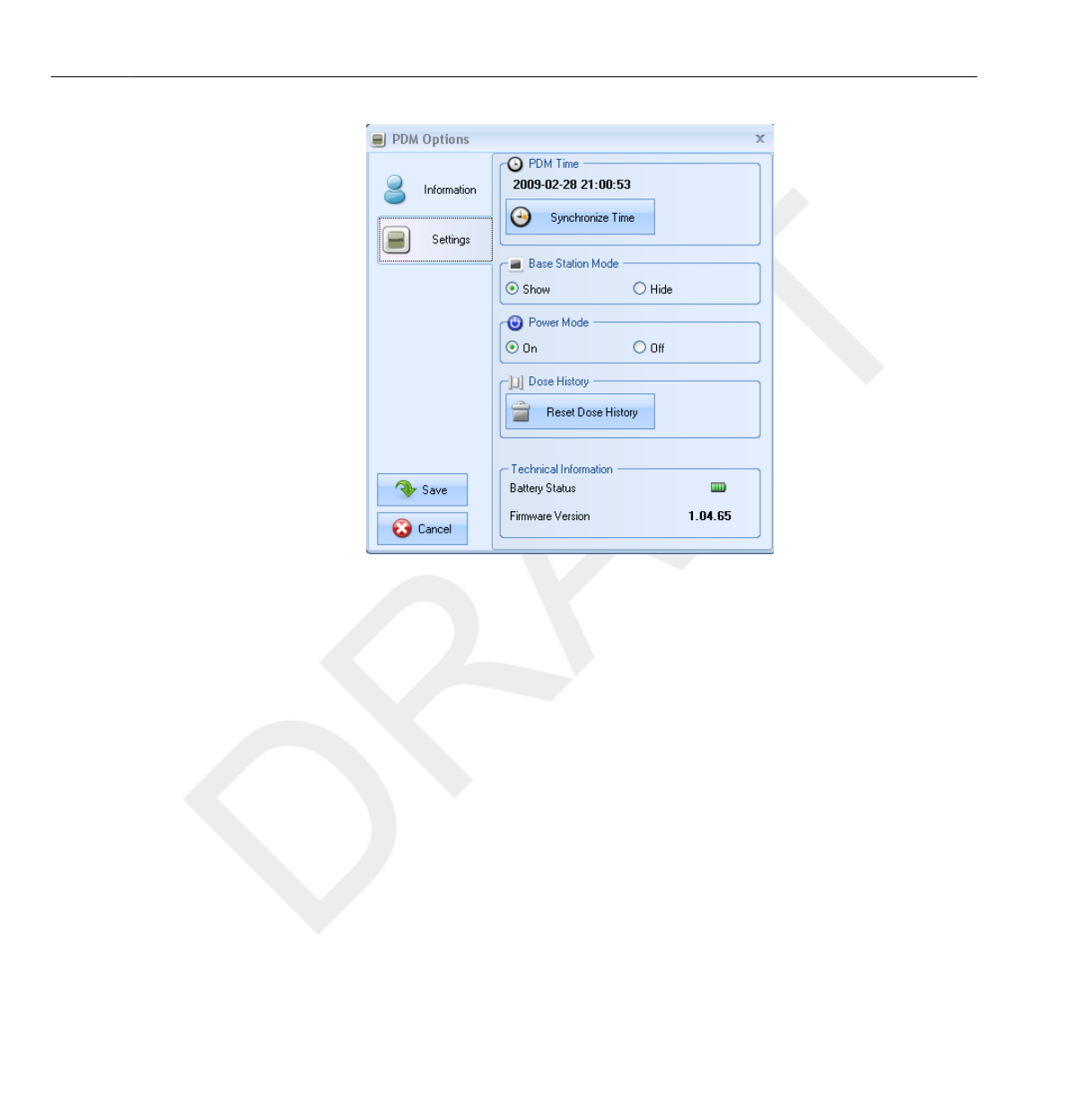 PDM and Base Station/DoseView memories 10.5