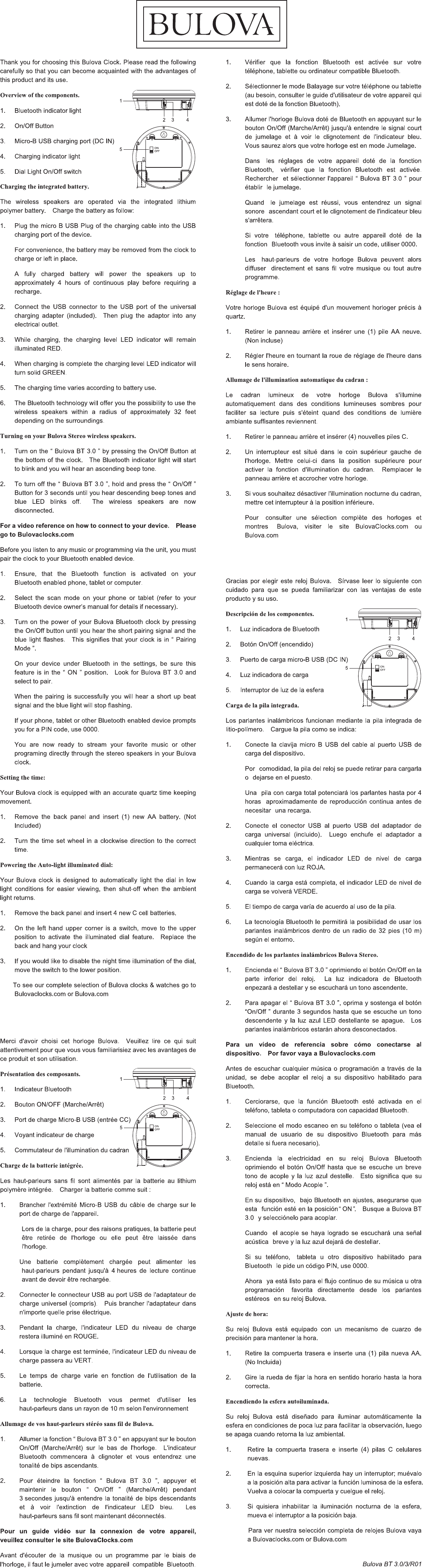 Uni rich Technology UR881 Bulova Clock with Bluetooth Speaker User Manual 3 language Bulova BT 3 0 3 R01 2016 12 21