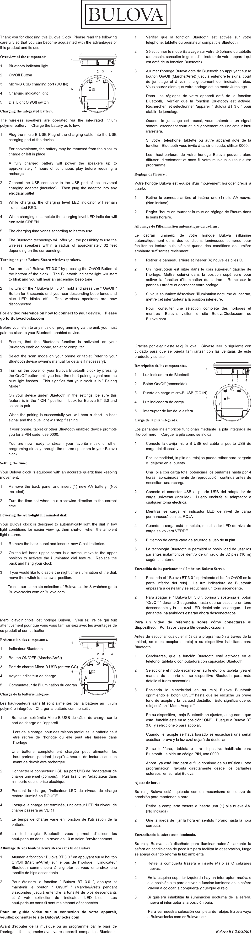 Uni rich Technology UR881 Bulova Clock with Bluetooth Speaker User Manual 3 language Bulova BT 3 0 3 R01 2016 12 21