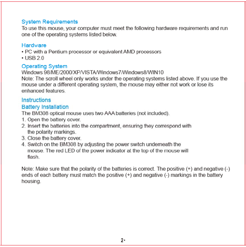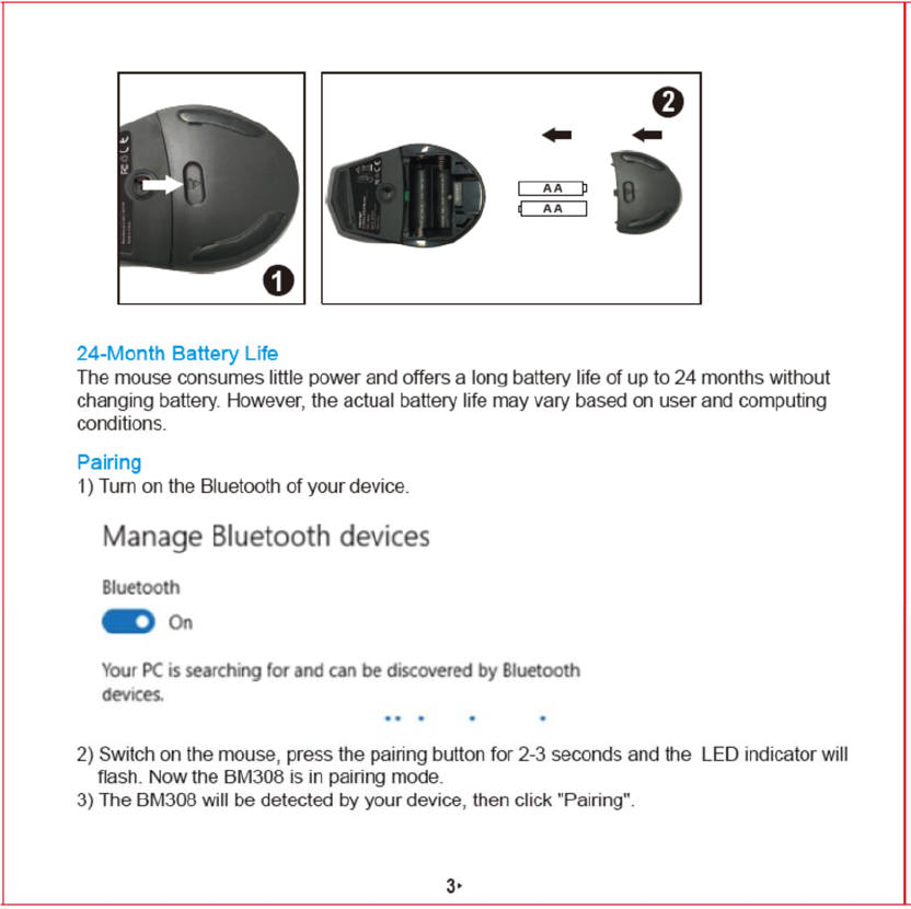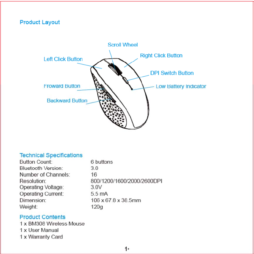 Unichain Technology BM308 Wireless mouse User Manual x