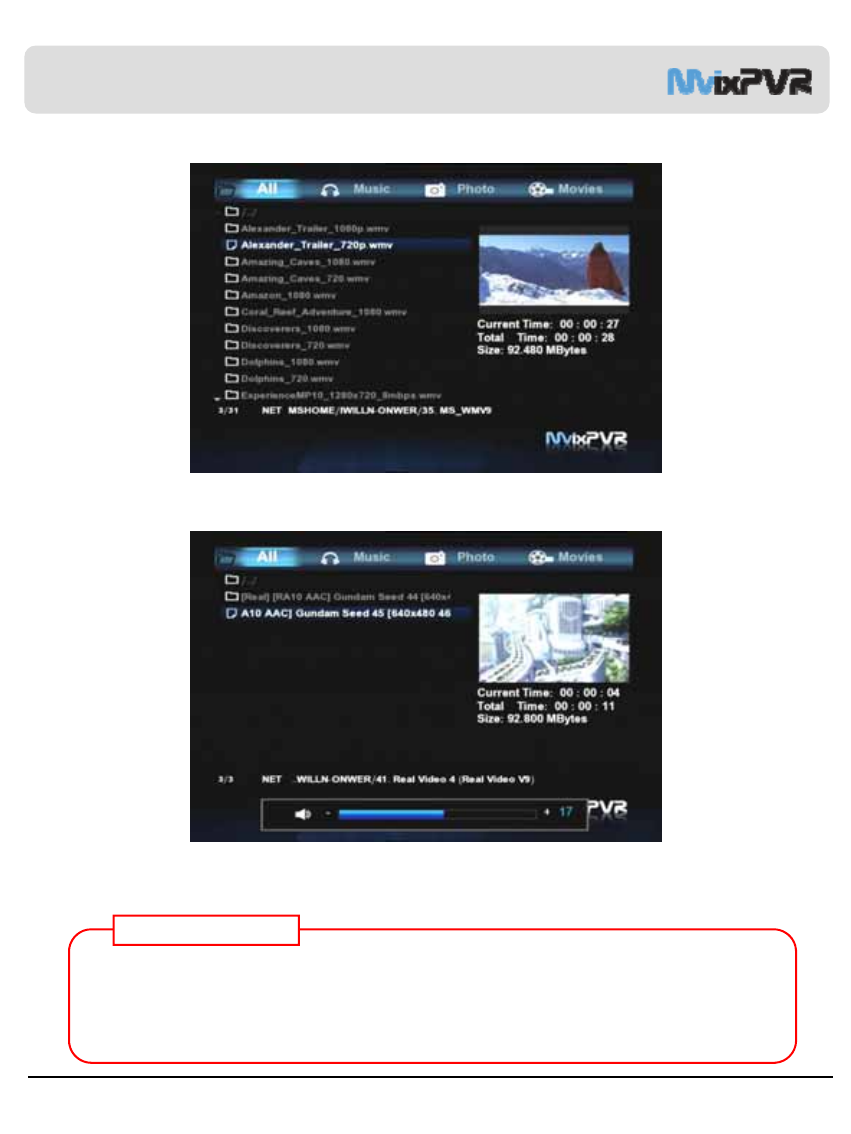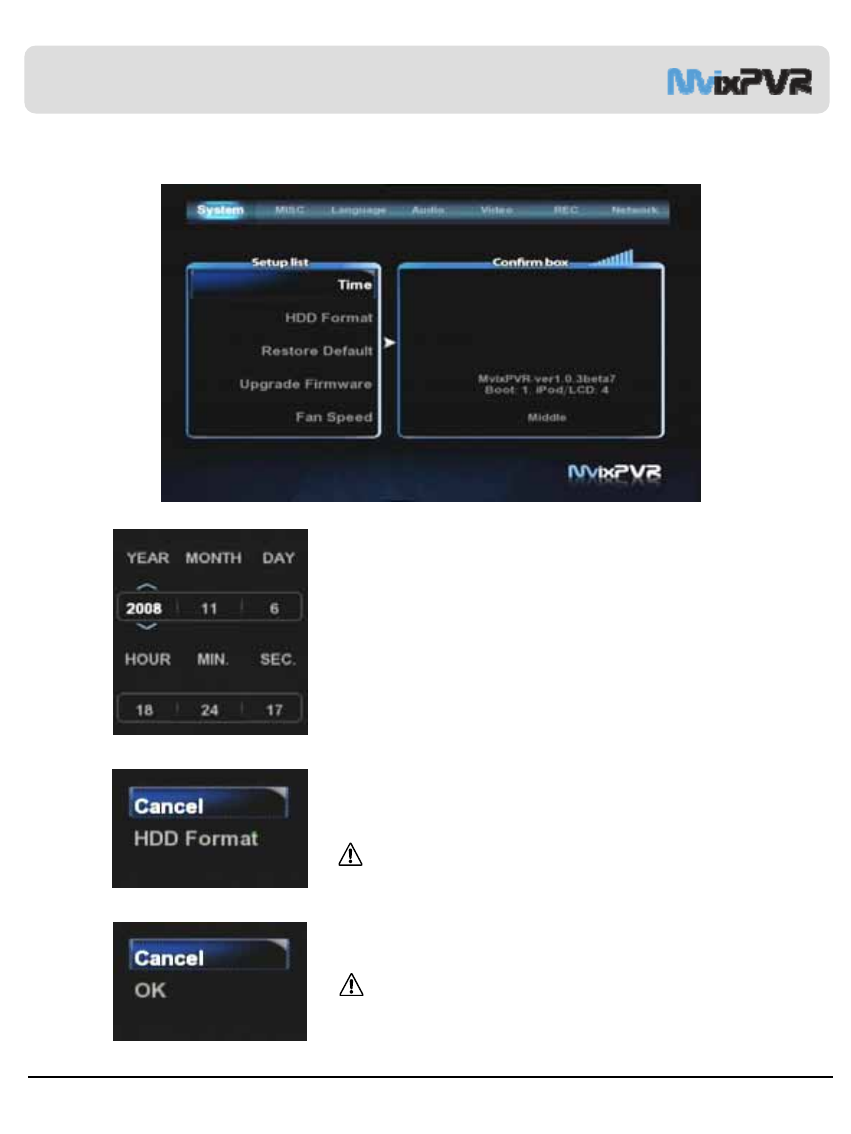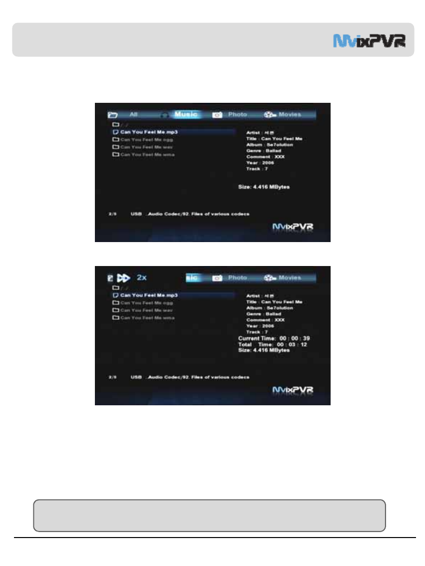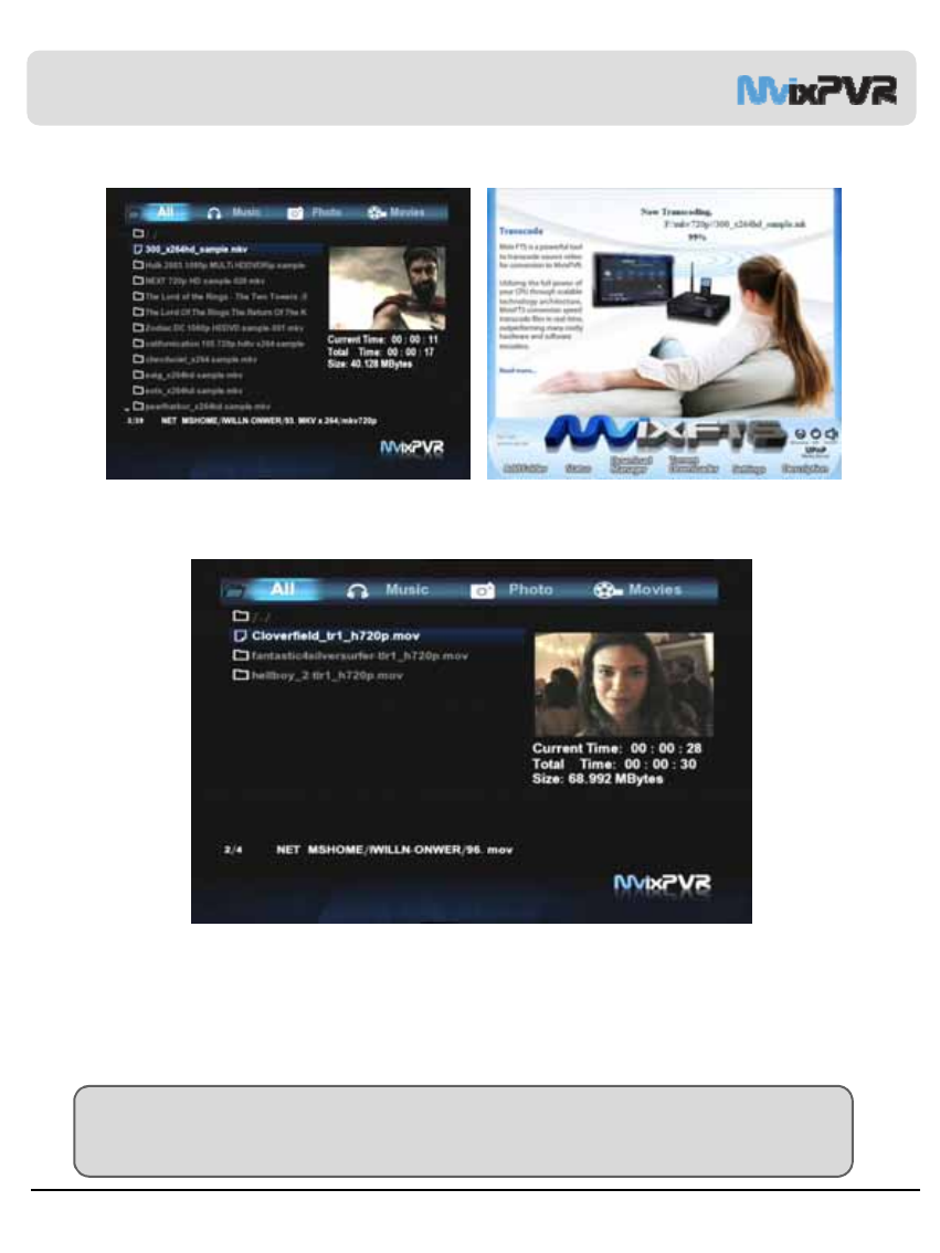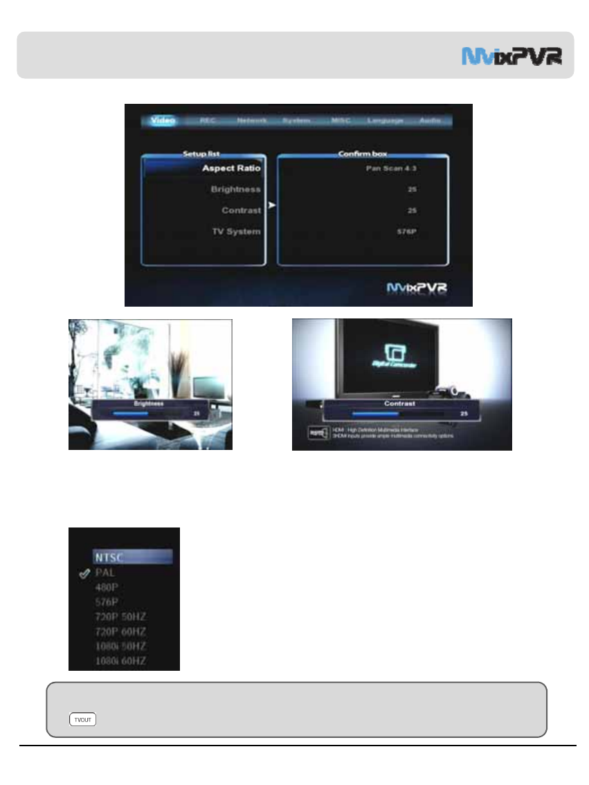 MvixPVR. Therefore, the screens are not displayed through TVOUT.