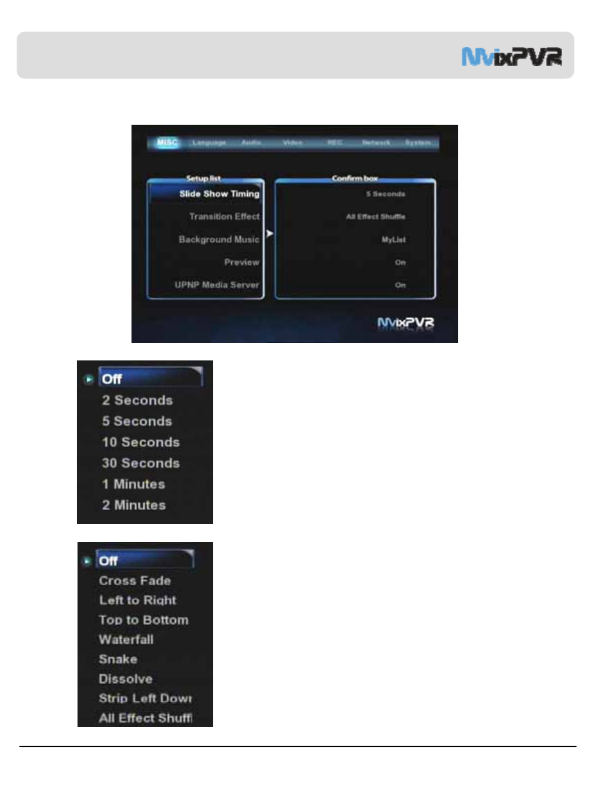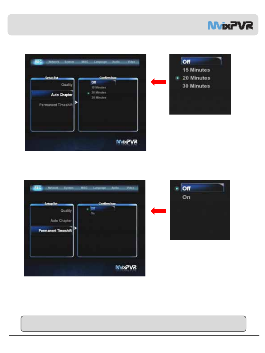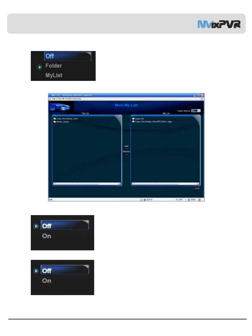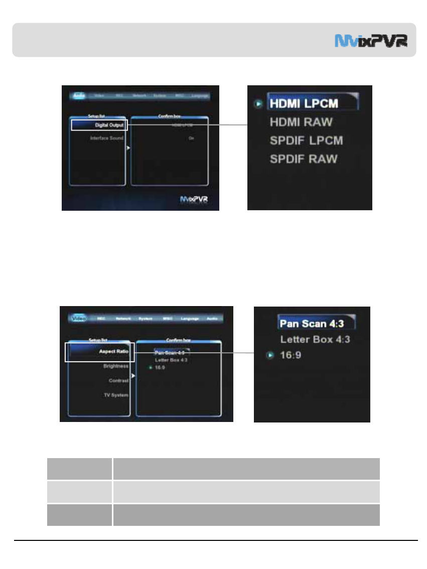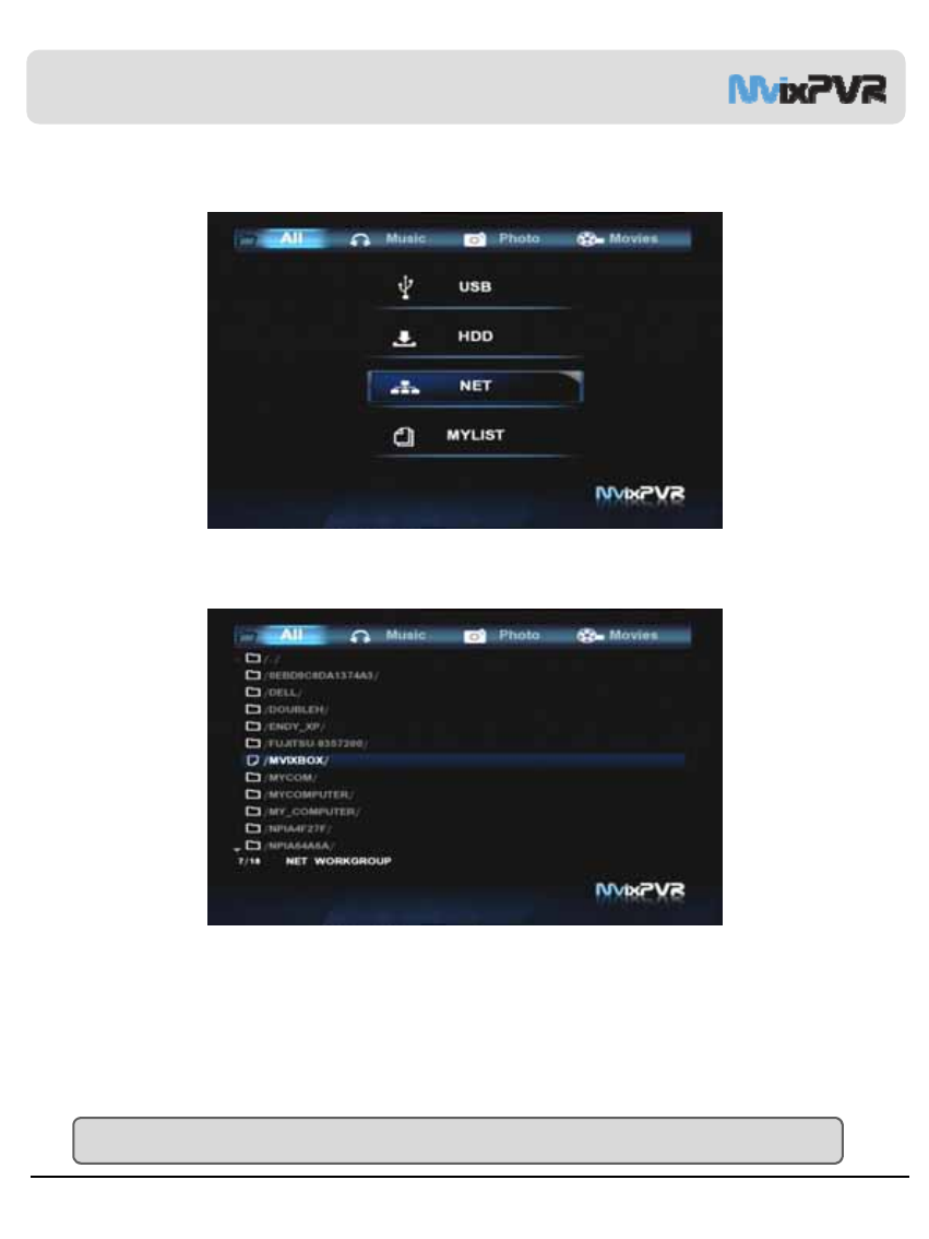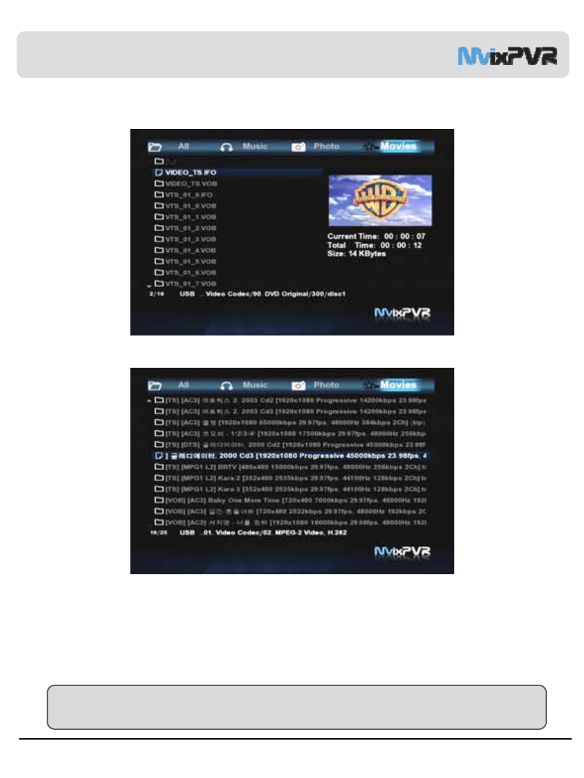 MvixPVR. Therefore, the screens are not displayed through TVOUT.