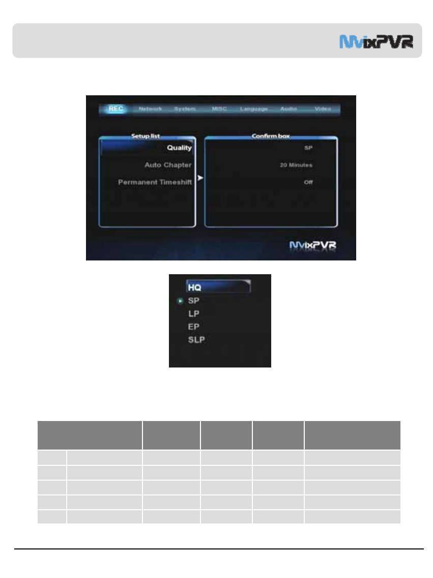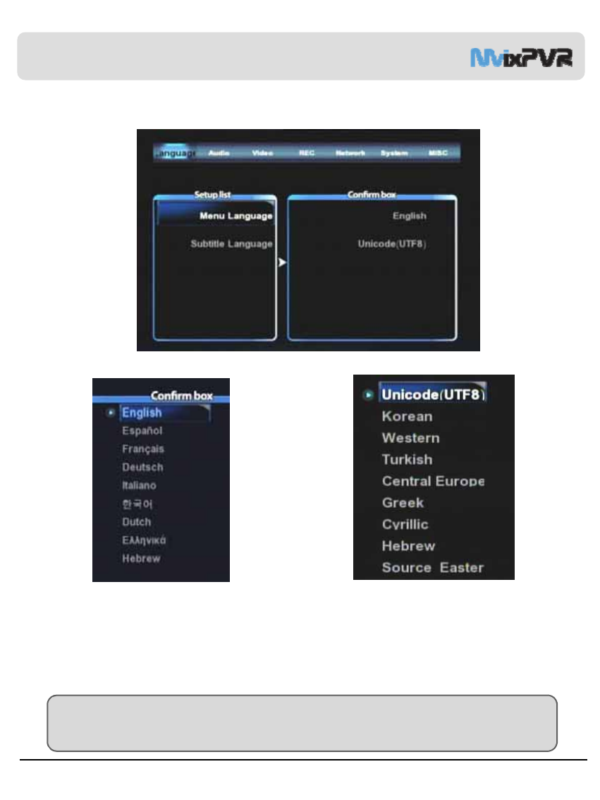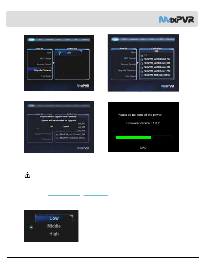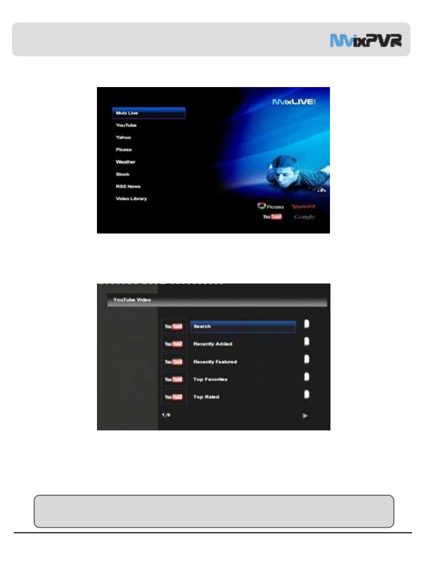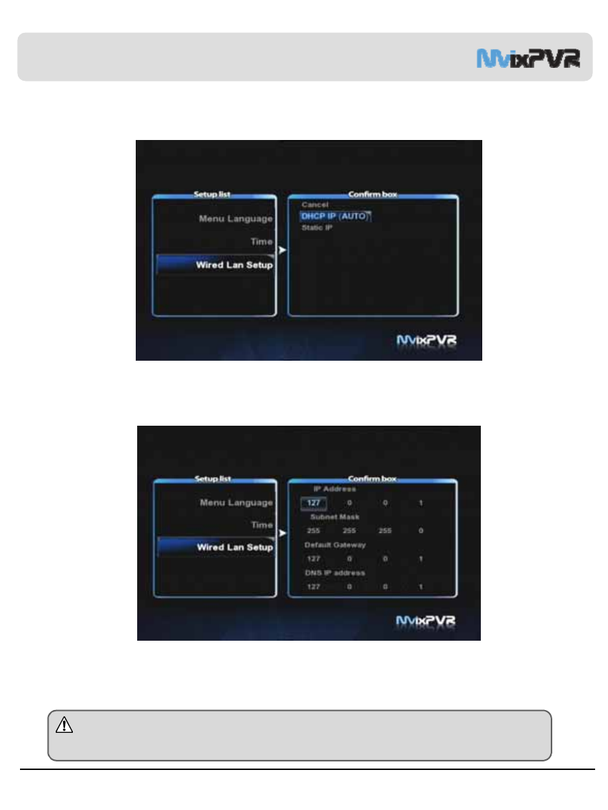 MvixPVR. Therefore, the screens are not displayed through TVOUT.
