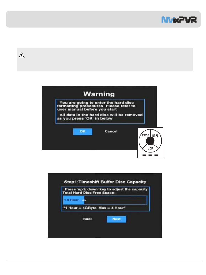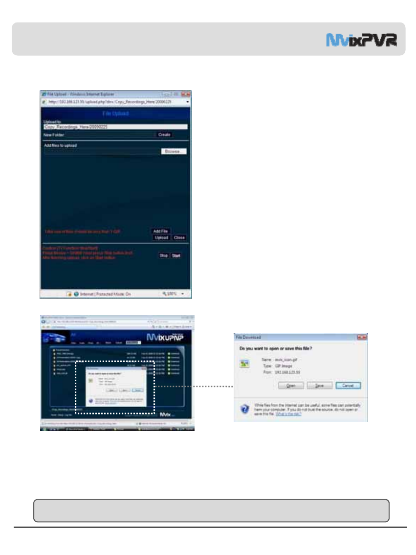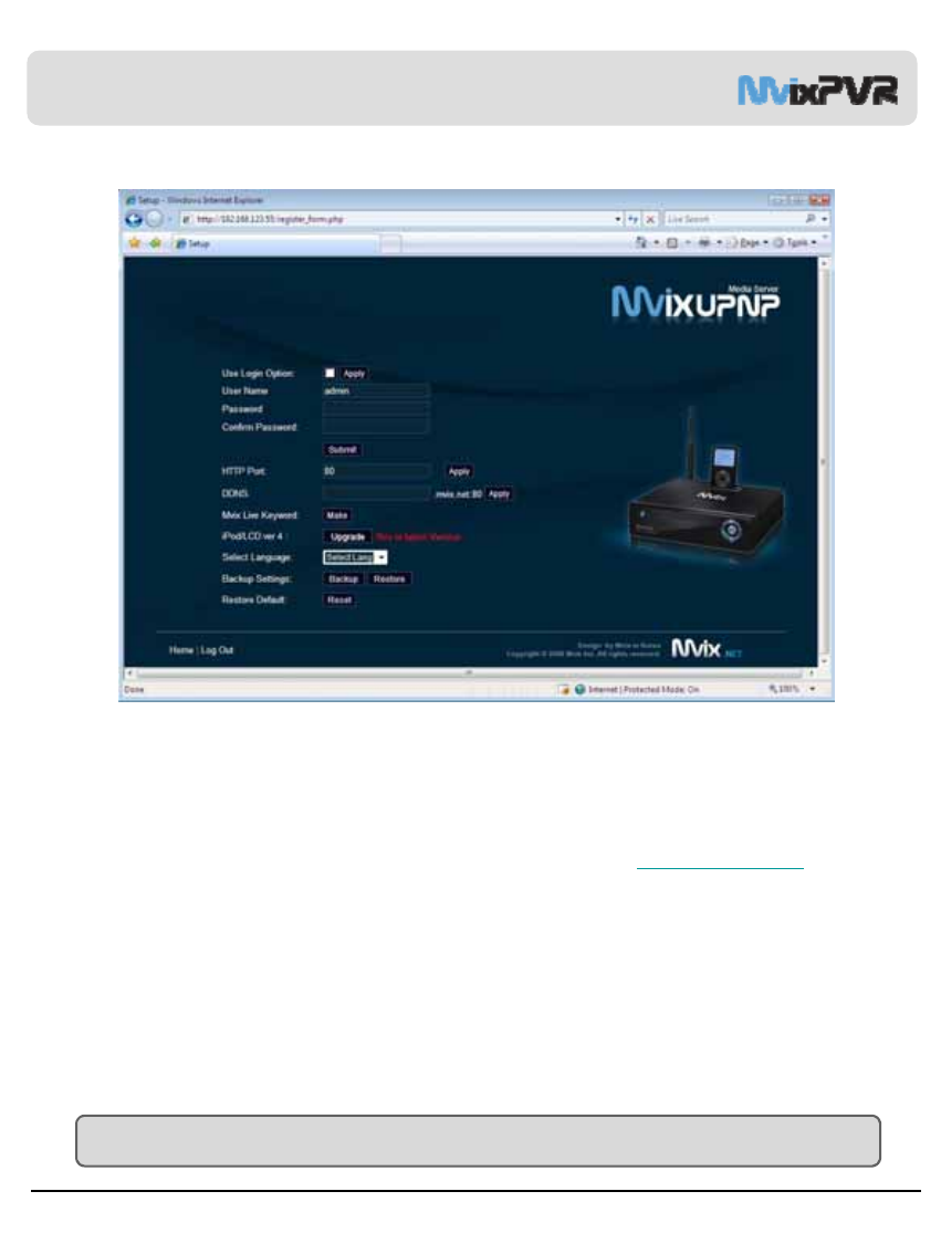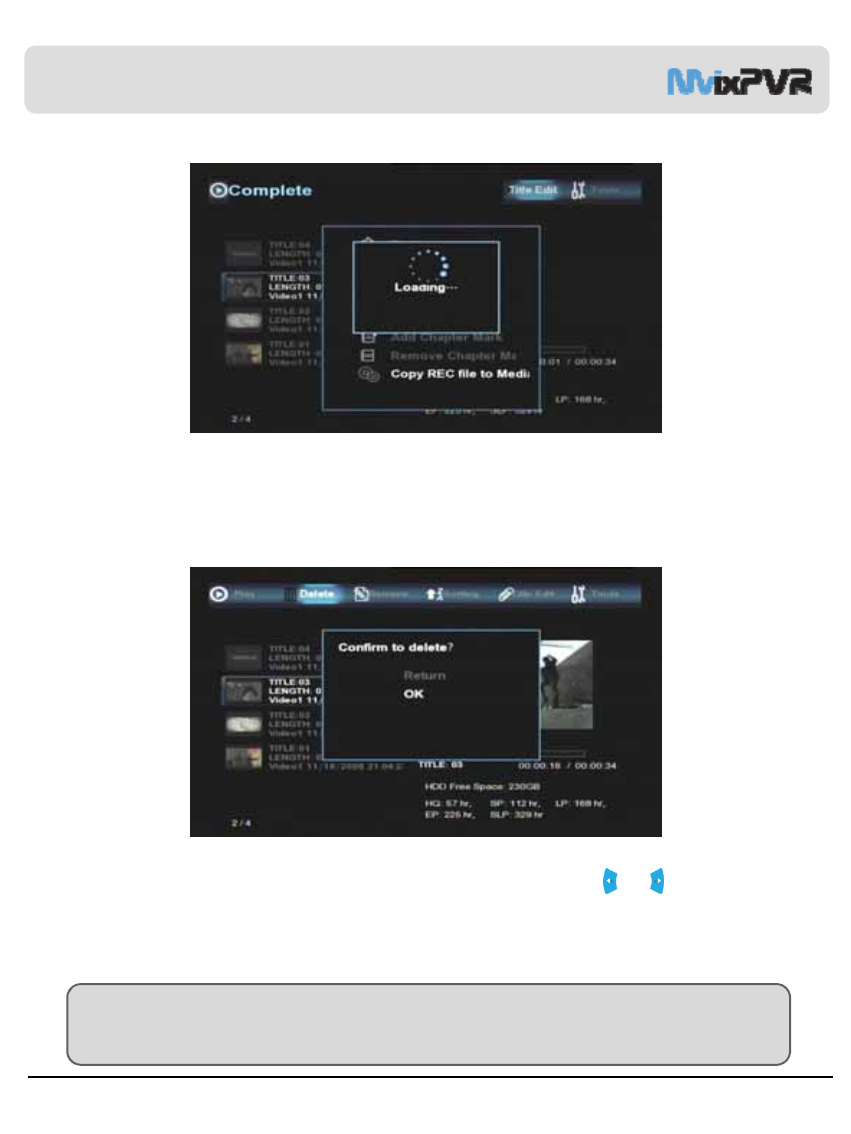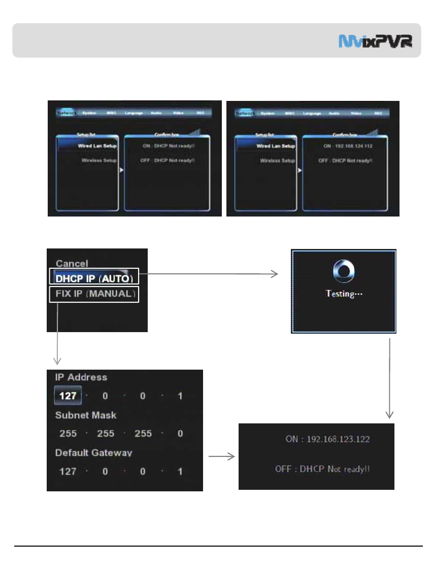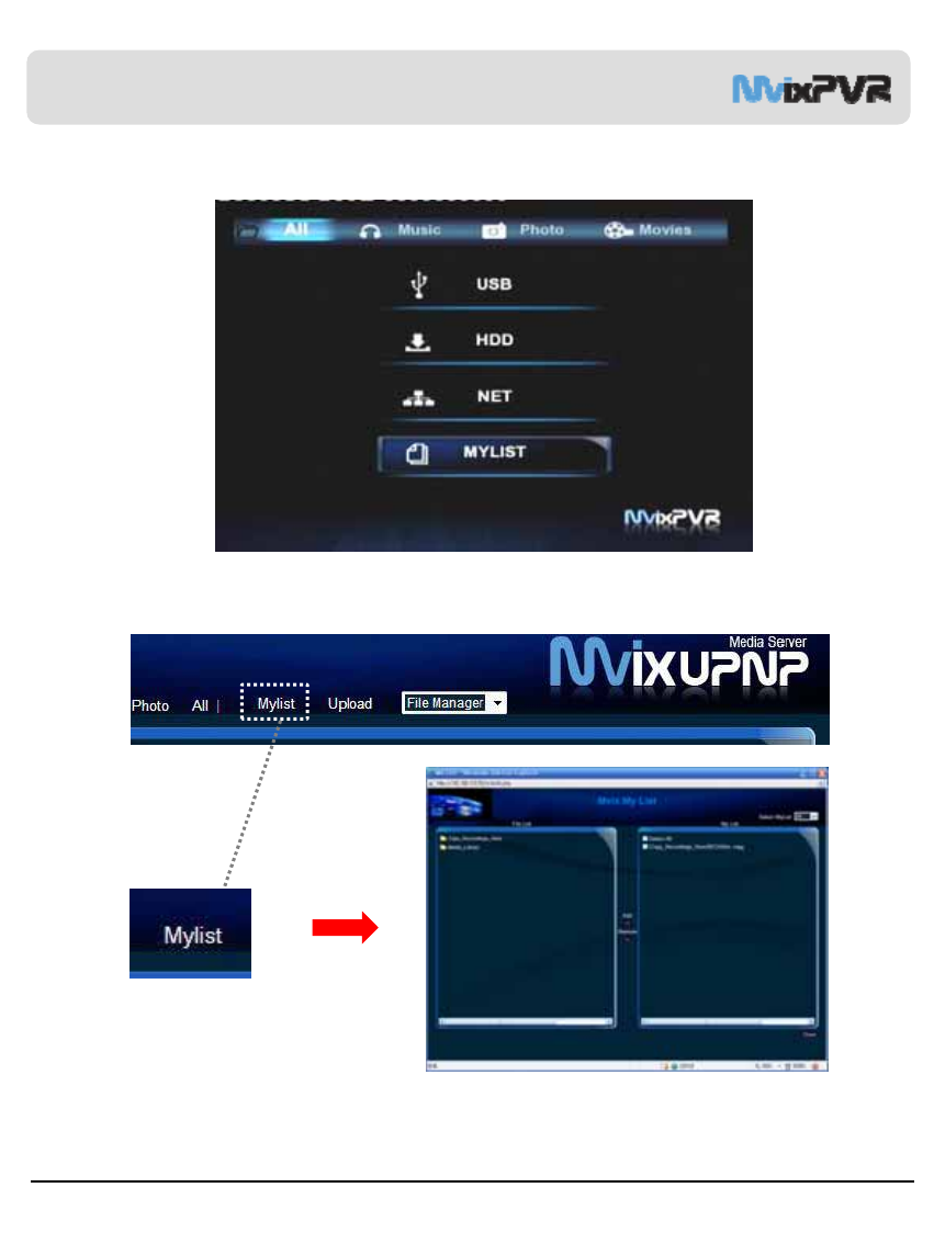 MvixPVR. Therefore, the screens are not displayed through TVOUT.