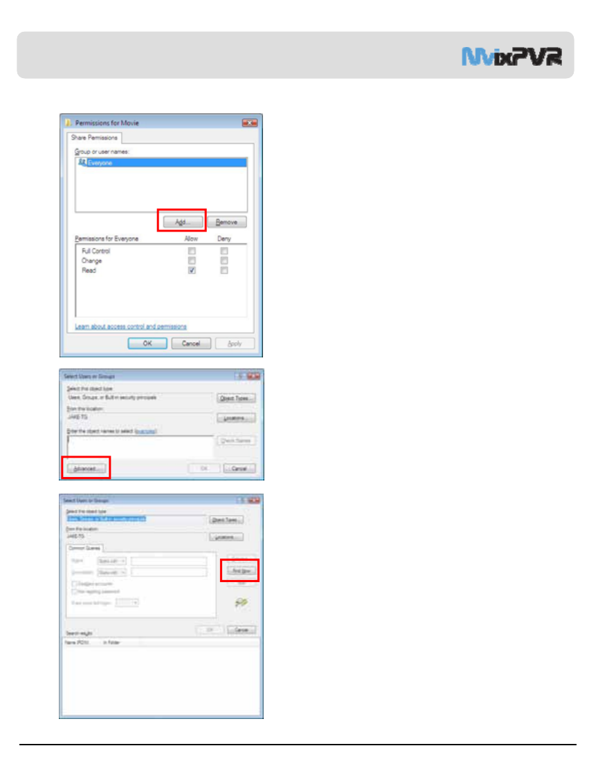 In Control Panel -> Network and Share Center, check setups for ‘Use File Sharing’ and ‘Not Password protected sharing’ as of theabove.