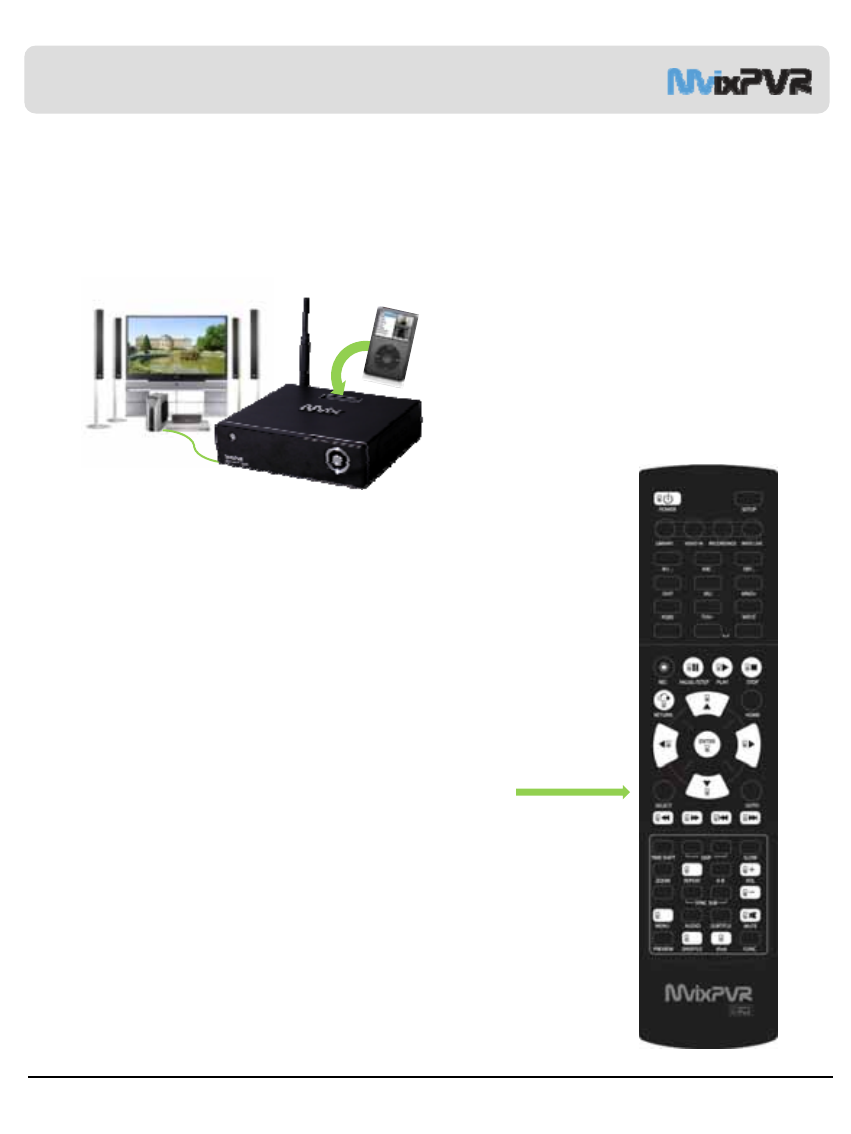 ※To play mp3 only after connecting iPod to MvixPVR, sound signal is automatically transmitted