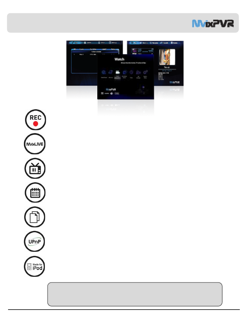iPod so that they can be displayed through digital recorder screen of MvixPVR. Standard