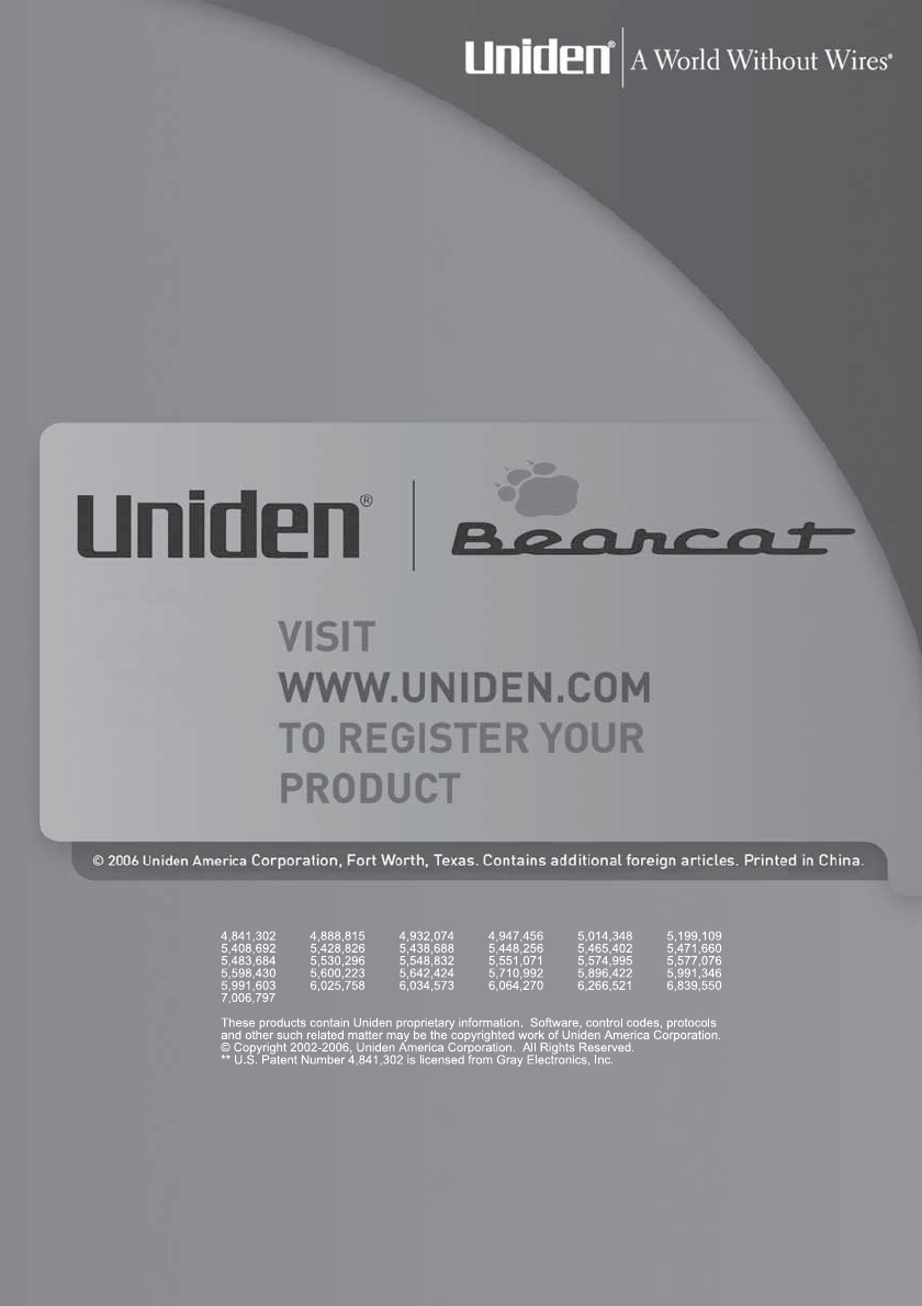 owner, this Uniden Product to be free from defects in materials and craftsmanship