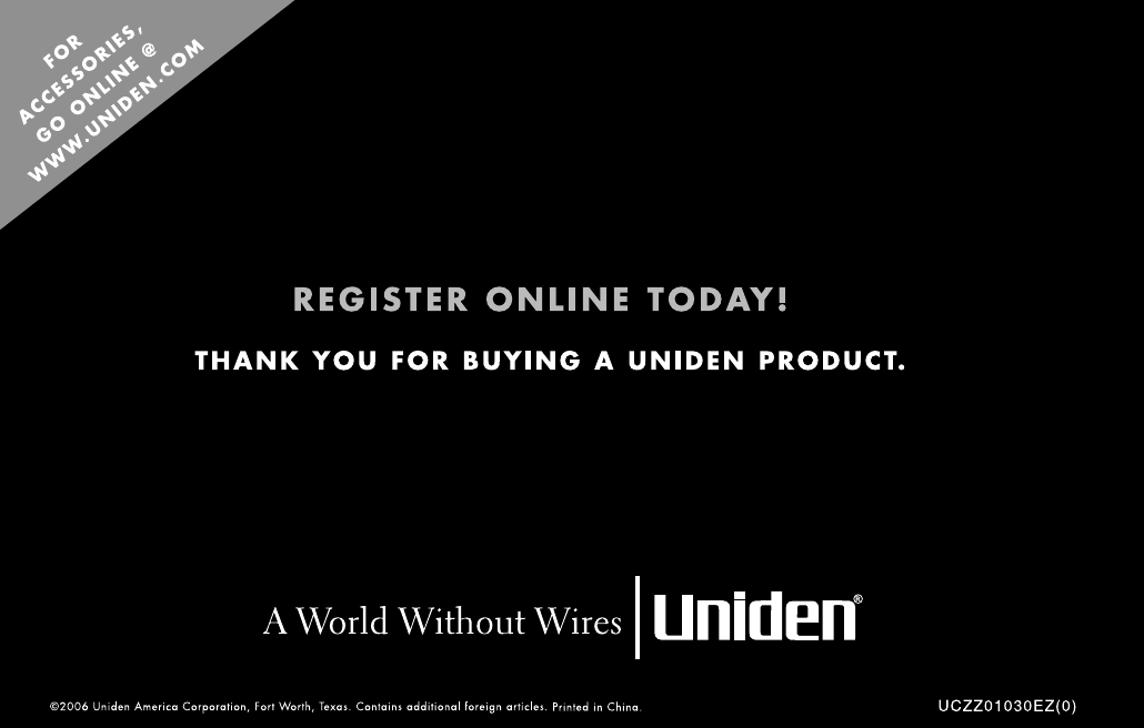 Thank you for purchasing a Uniden product. If you have any questions or problems,
