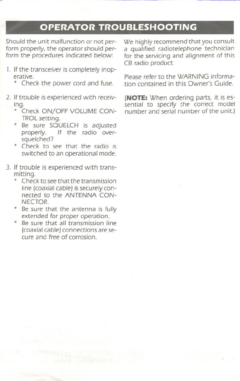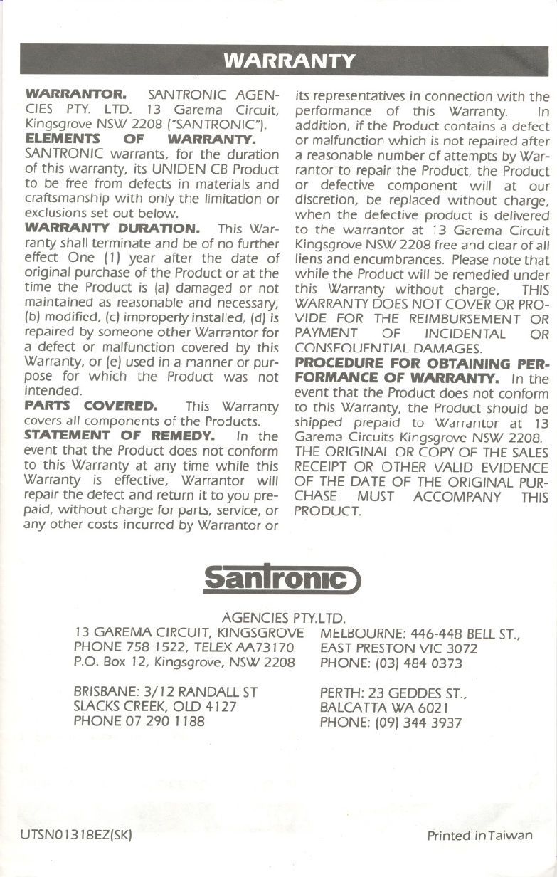 different license. Channel 9 has 8. TX INDICATOR: Light Emitting