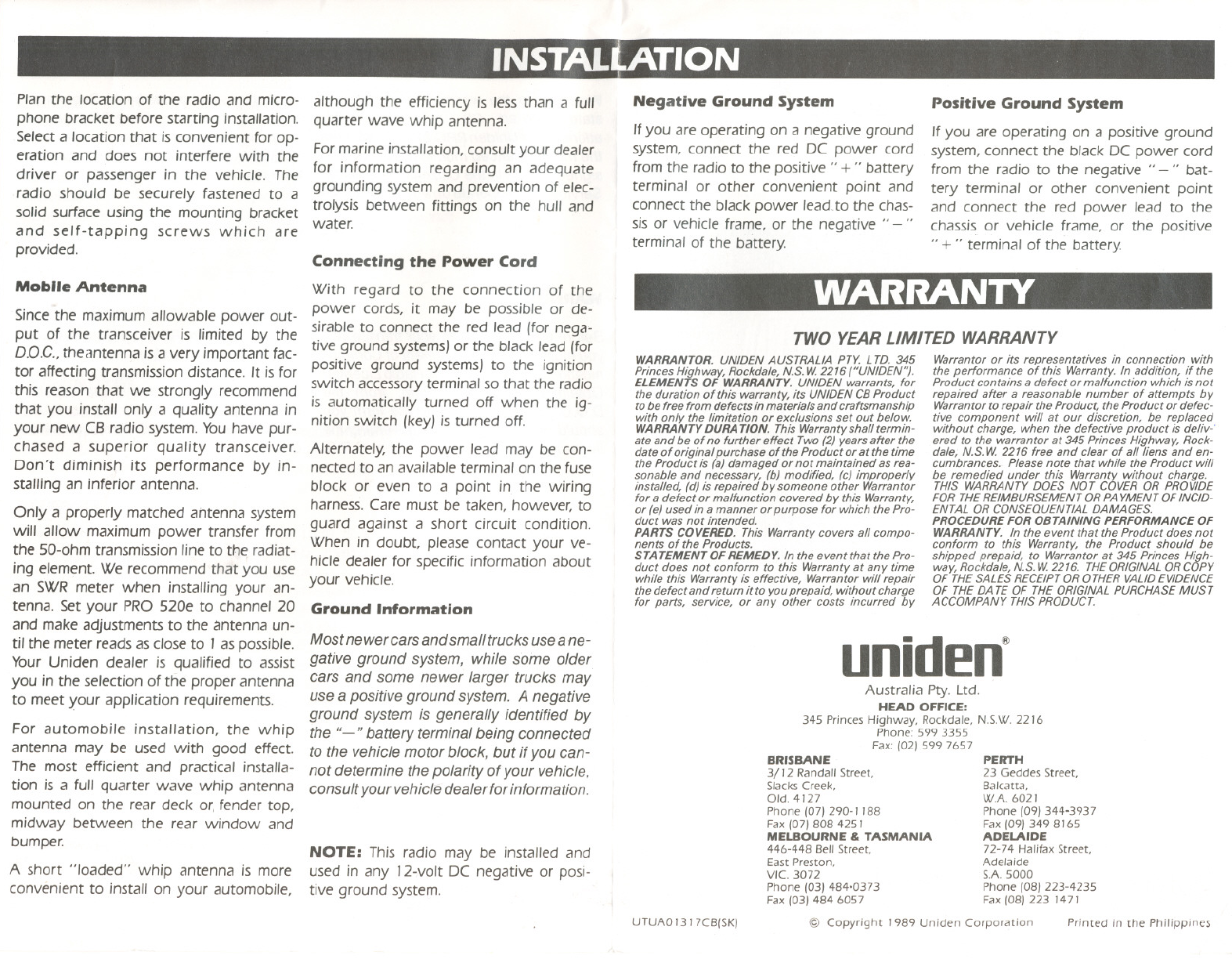 @ Copyright J989 Uniden Corporation Printed in the Philippines