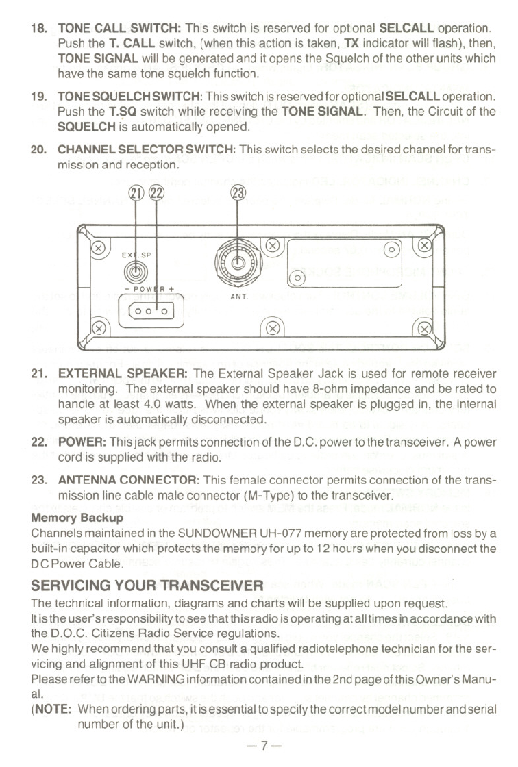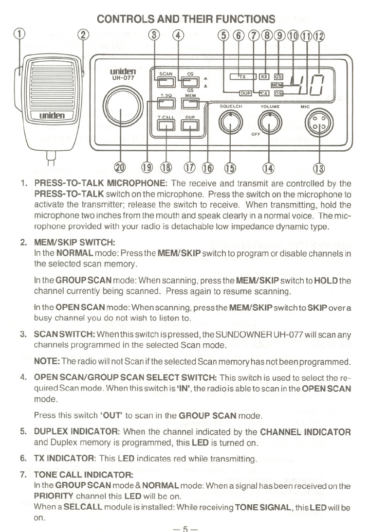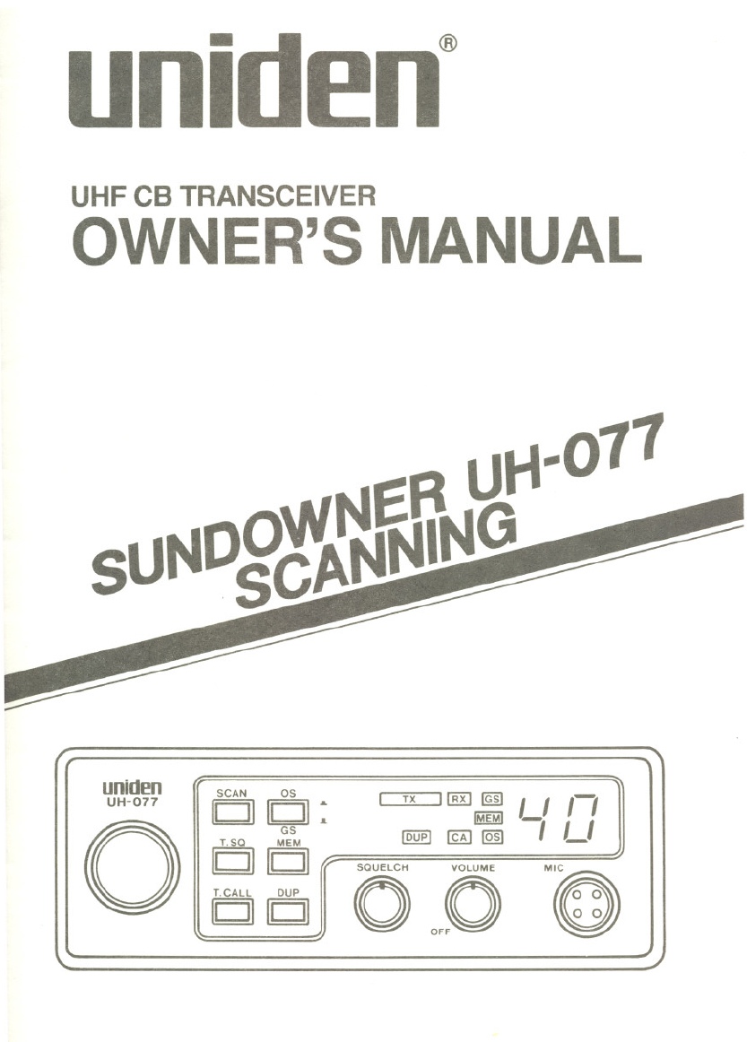 Your UNIDENModel SUNDOWNER UH-O77represents the most advanced Mobile Sta-