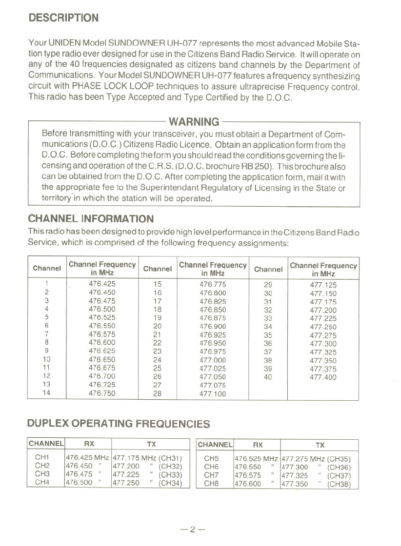 Communications. Your Model SUNDOWNER UH-O77features a frequency synthesizing
