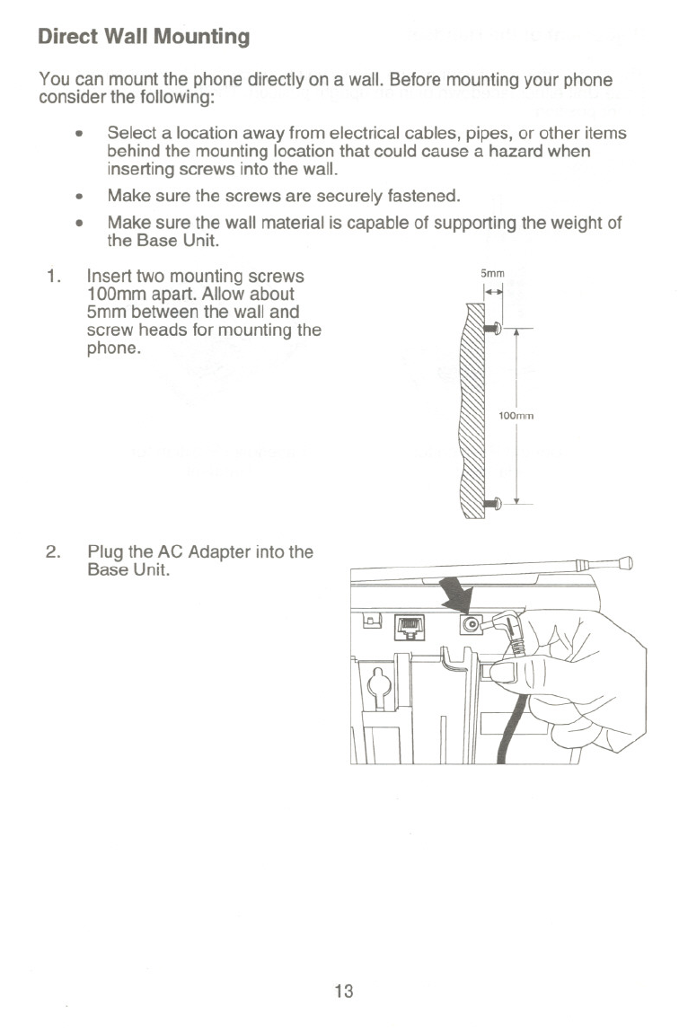 the Base Unit and wall outlet.